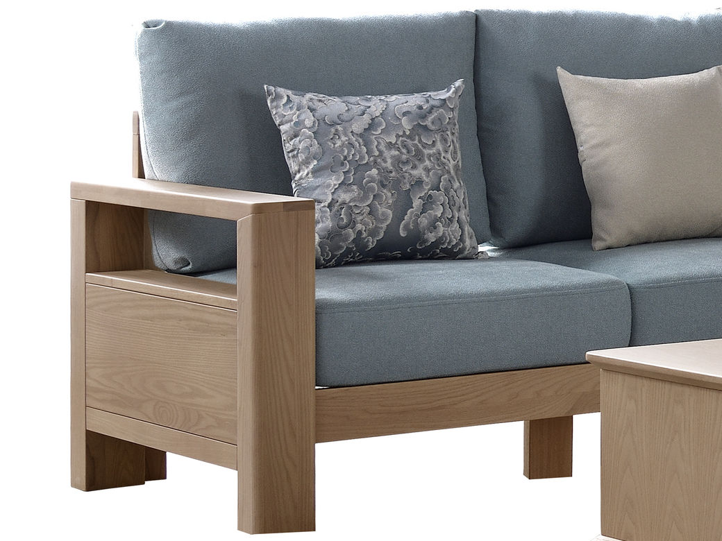 优木集 现代简约 接触面棉麻面料+高回弹海绵+白蜡木实木框架+橡胶木 2.182米沙发