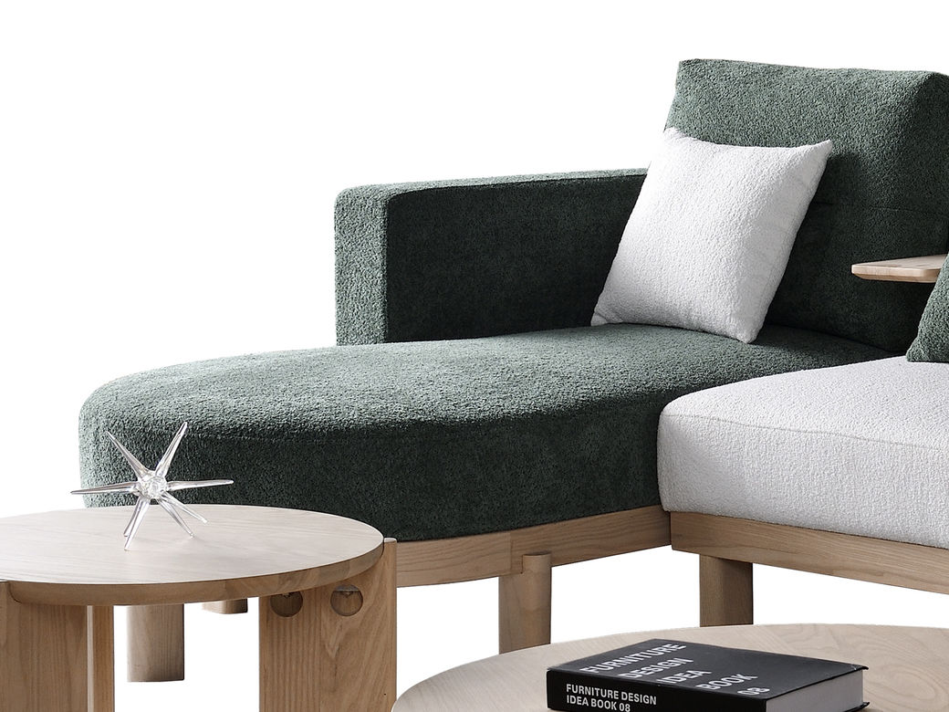 优木集 现代简约 接触面棉麻面料+高回弹海绵+白蜡木实木框架+橡胶木 3.09米沙发¥7261
