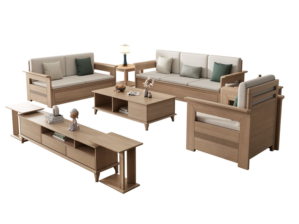优木集 现代简约 接触面棉麻面料+高回弹海绵+白蜡木实木框架+橡胶木 3.09米沙发¥7803