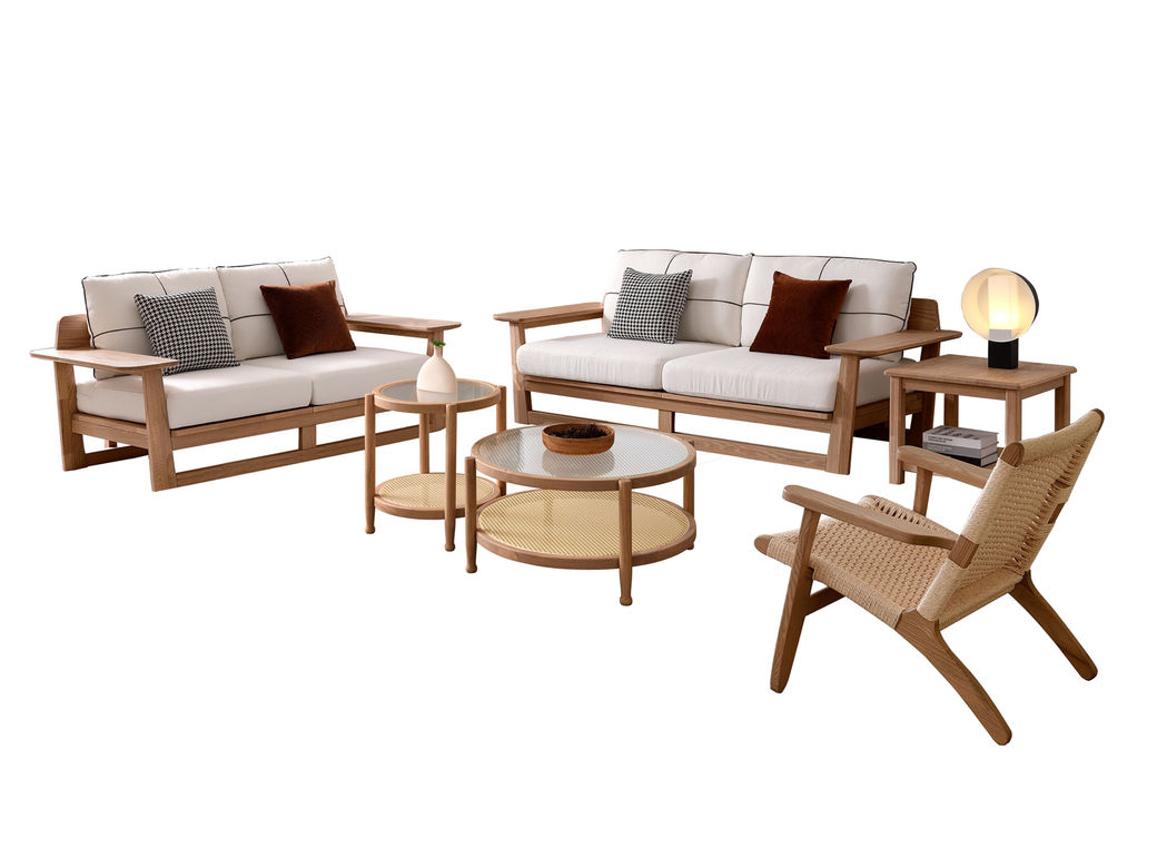 优木集 现代简约 接触面棉麻面料+高回弹海绵+白蜡木实木框架+橡胶木 2.16米沙发¥13590