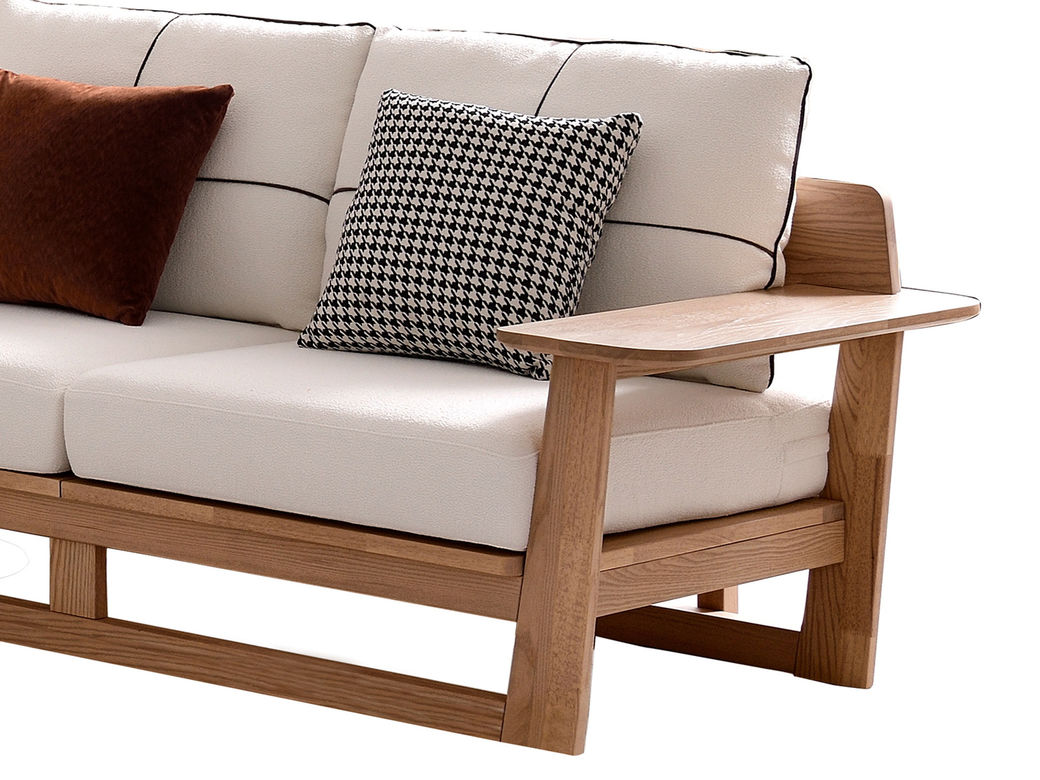 优木集 现代简约 接触面棉麻面料+高回弹海绵+白蜡木实木框架+橡胶木 2.16米沙发¥13590