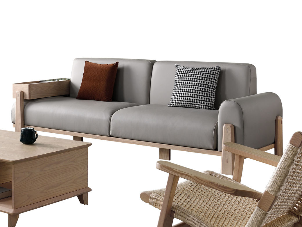 优木集 现代简约 接触面棉麻面料+高回弹海绵+白蜡木实木框架+橡胶木 2.16米沙发¥3720