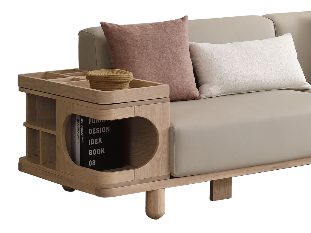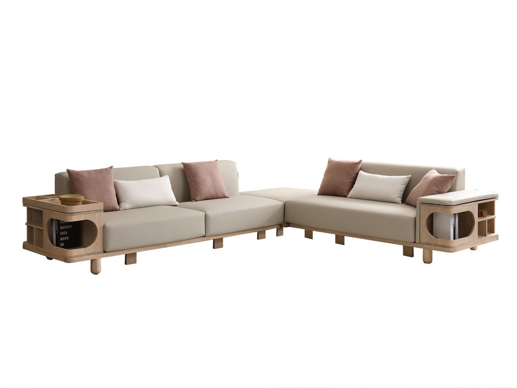 优木集 现代简约 接触面棉麻面料+高回弹海绵+白蜡木实木框架+橡胶木 2.69米沙发¥5982