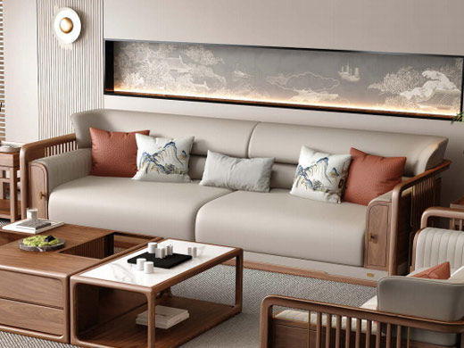 匠心 中式 榄仁木+实木多层板米25生态皮 三人位 2.6米沙发¥5906