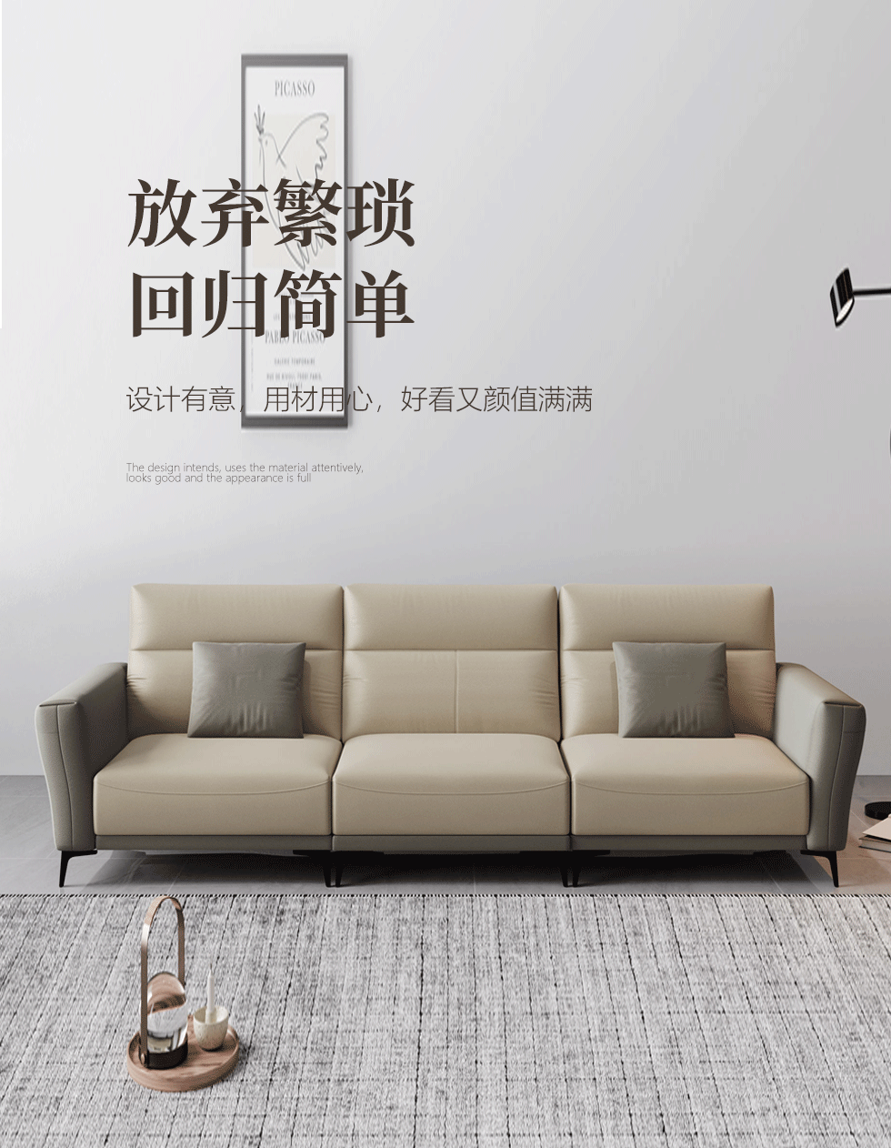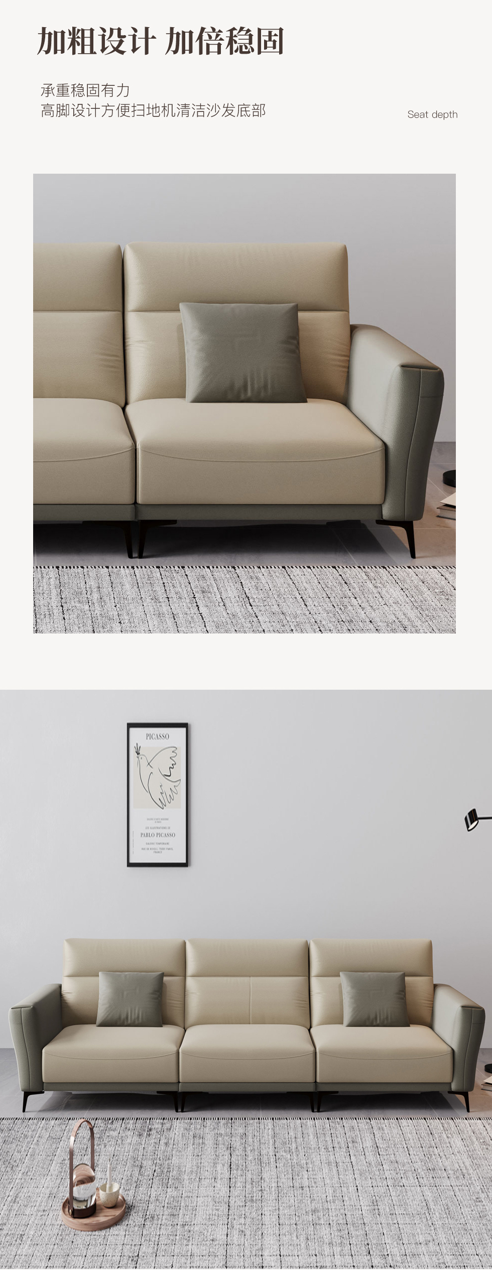 【套餐专享价】每屋优享系列 极简 优质生态真皮+ 实木框架+电镀蛇簧+高密度海绵 2.7米 四人位沙发【套餐专享价】每屋优享系列 现代简约 进口全实木抛光落叶松+金刚弹簧网+接触面生态真皮+非接触面仿皮+45度高回弹海绵 2.8米 沙发