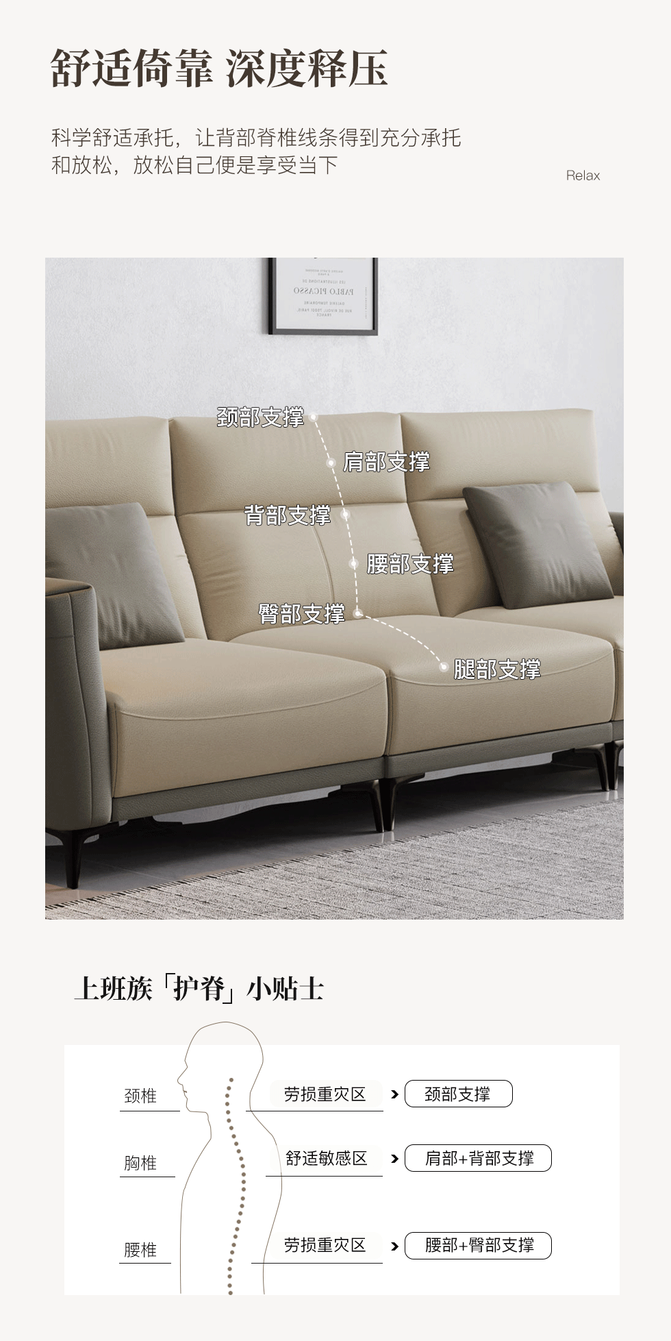 【套餐专享价】每屋优享系列 现代简约 进口全实木抛光落叶松+金刚弹簧网+接触面生态真皮+非接触面仿皮+45度高回弹海绵(靠包抱枕)公仔棉+超级加宽松紧带+圆柱铁脚 3米 沙发¥4660