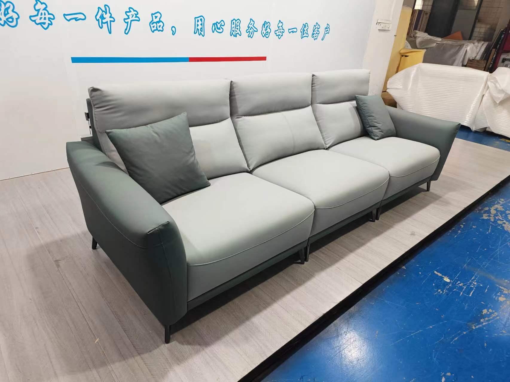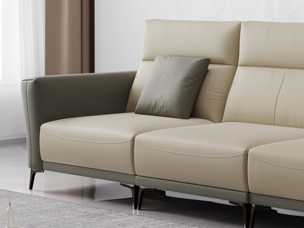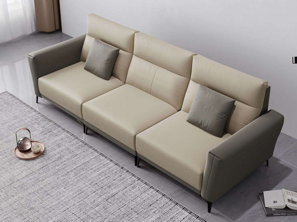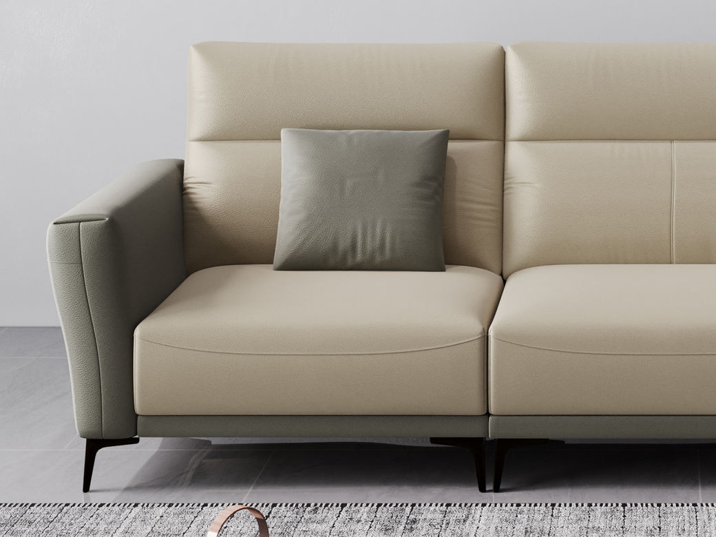 【套餐专享价】每屋优享系列 现代简约 接触面生态真皮+45度高回弹海绵+靠包+抱枕公仔棉填充+进口全实木抛光落叶松+金刚弹簧网+超级加宽松 紧带+13cm黑色铁脚 2.8米 沙发