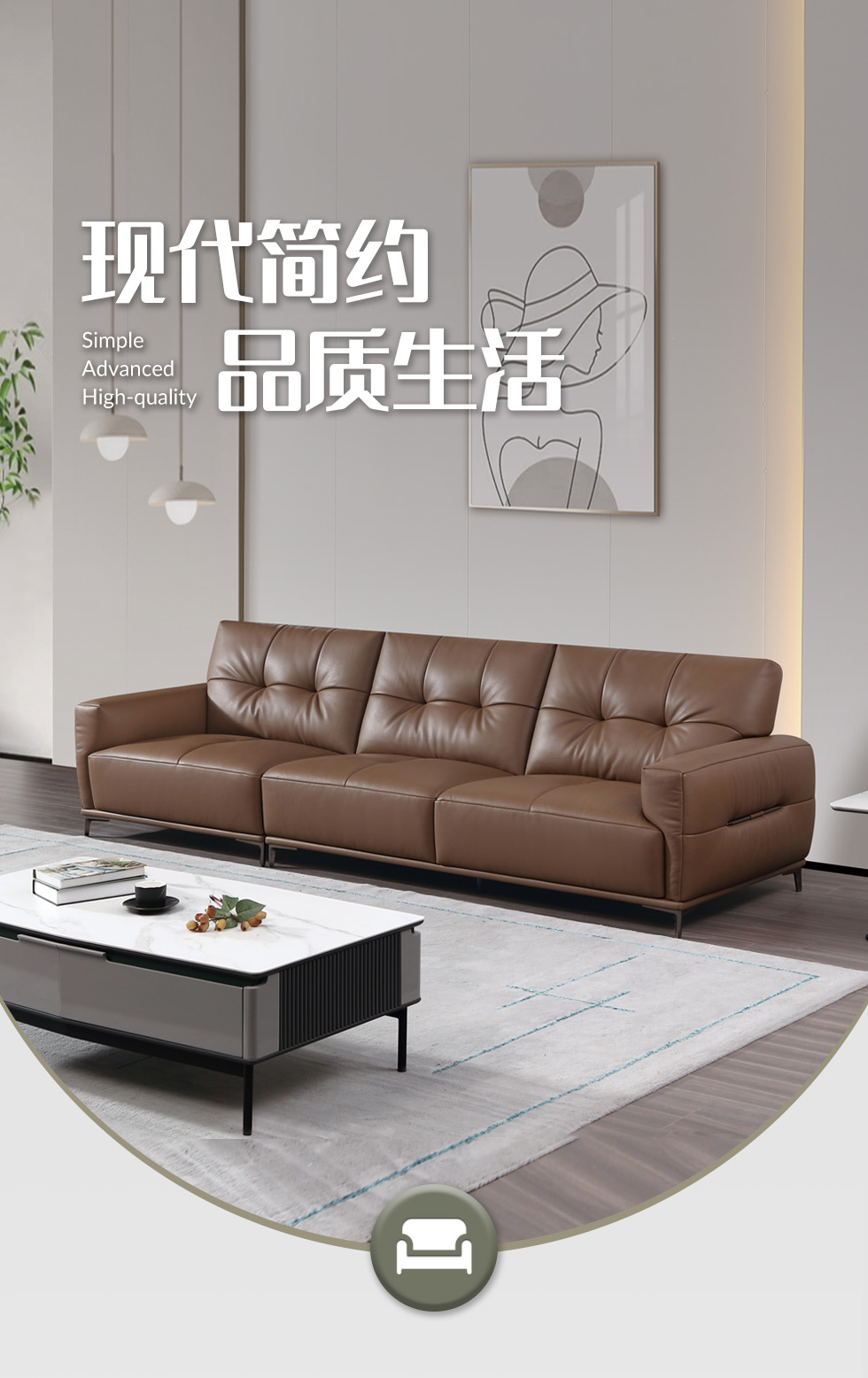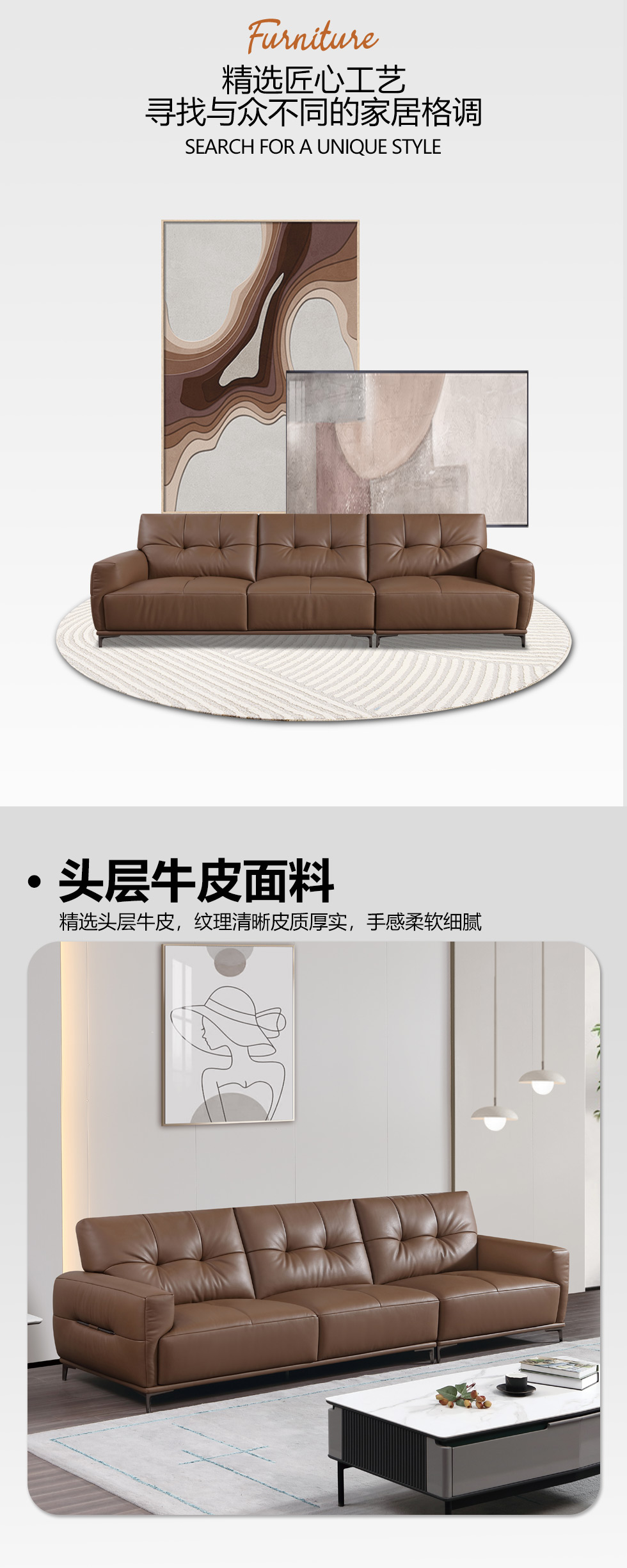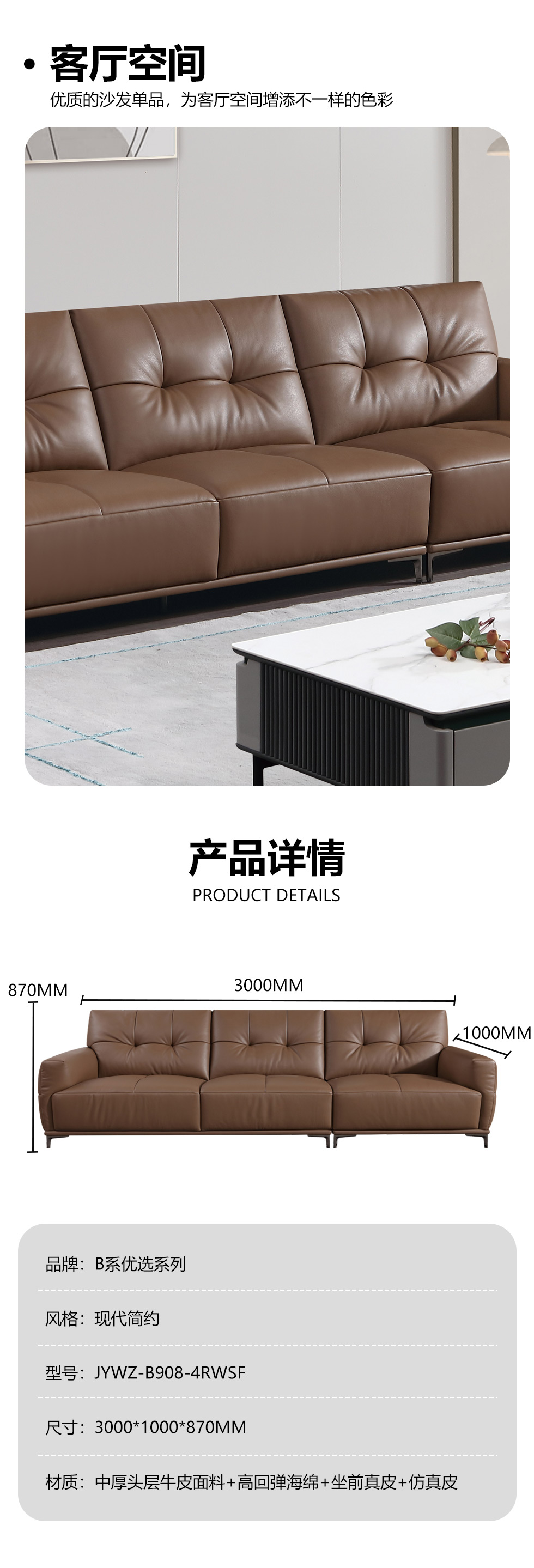 B系优选 现代简约 接触面头层黄牛皮+仿真皮+E1级多层实木板+进口落叶松 四人位 2.8米沙发【套餐专享价】每屋优享系列 现代简约 接触面中厚头层牛皮面料+进口俄罗斯松木框架+高回弹海绵+坐前真皮+仿真皮 三人位 3.01米直排 沙发