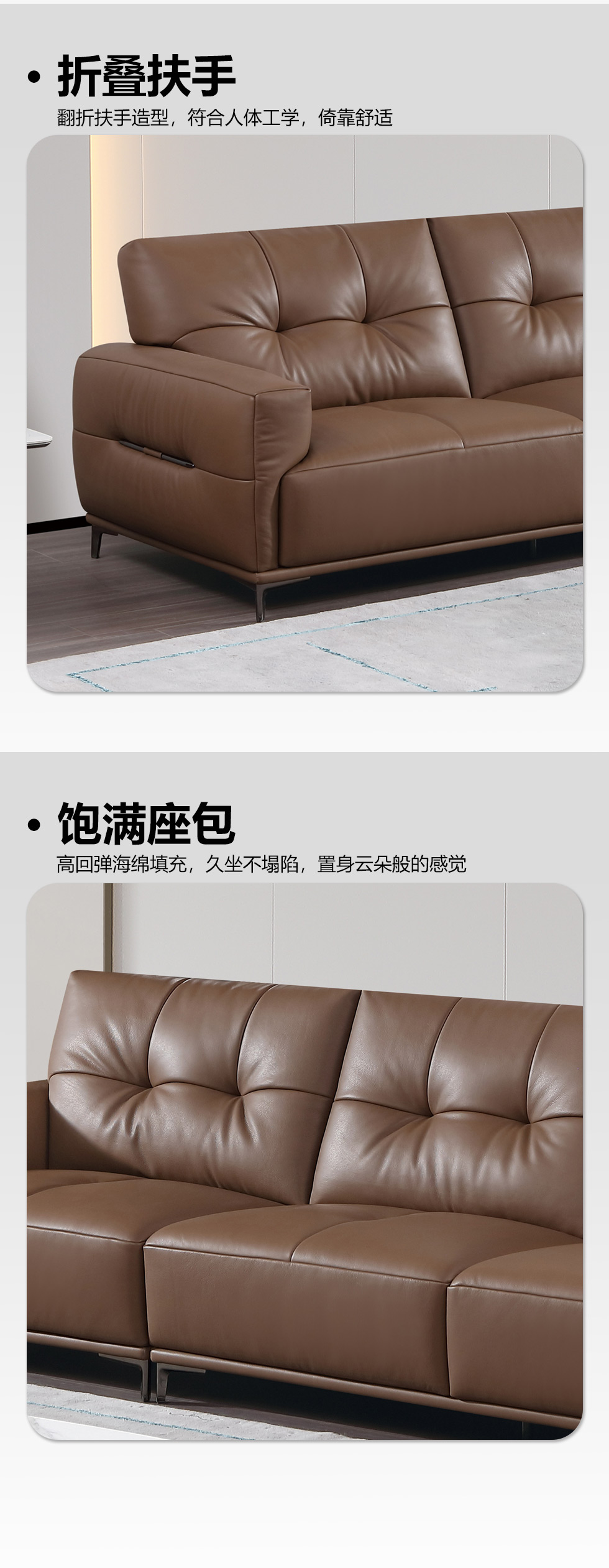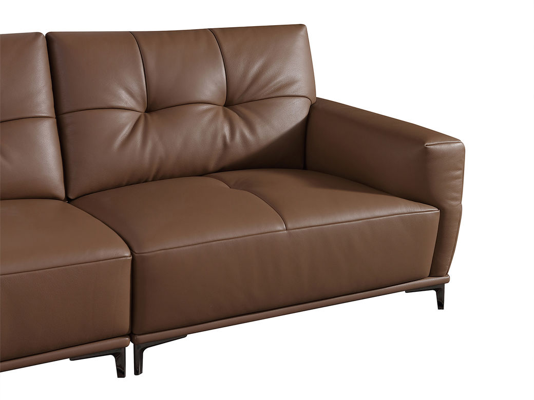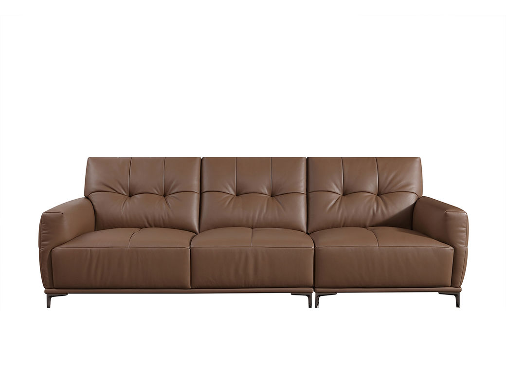 B系优选 现代简约 接触面头层黄牛皮+仿皮 E1级夹板+松木框架 无粉海绵 靠包赛羽绒+公仔棉填充 样色 直排3.2米四人位 皮艺沙发