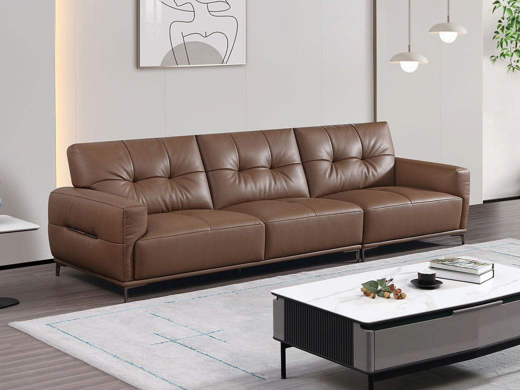 B系优选 现代简约 接触面中厚头层牛皮面料+进口俄罗斯松木框架+高回弹海绵+仿真皮 四人位 3.2米沙发¥8155