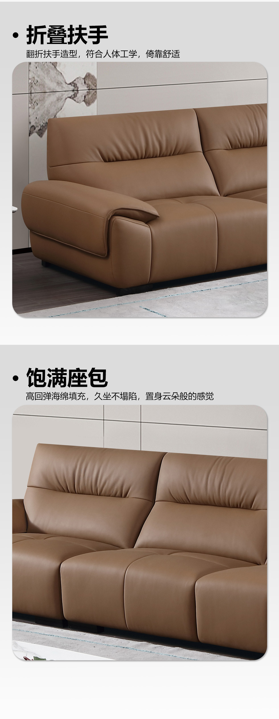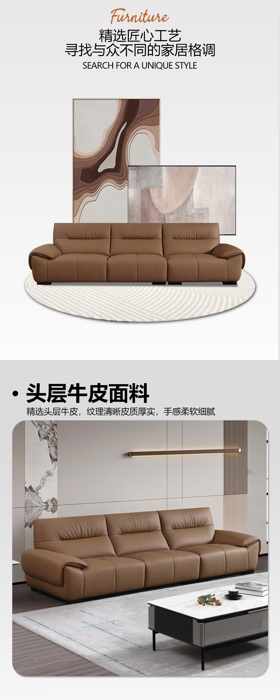 B系优选 现代简约 接触面中厚头层牛皮面料+进口俄罗斯松木框架+高回弹海绵+坐前真皮+仿真皮 四人位 3米沙发¥8155