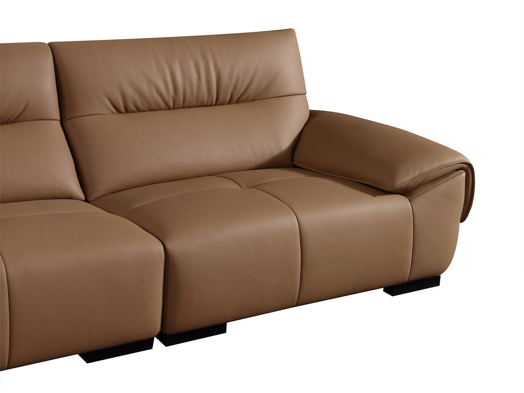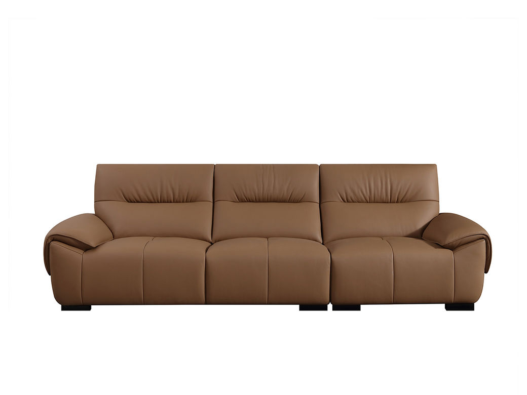 B系优选 现代简约 接触面头层黄牛皮+仿皮 E1级夹板+松木框架 无粉海绵 靠包赛羽绒+公仔棉填充 样色 直排3.2米四人位 皮艺沙发