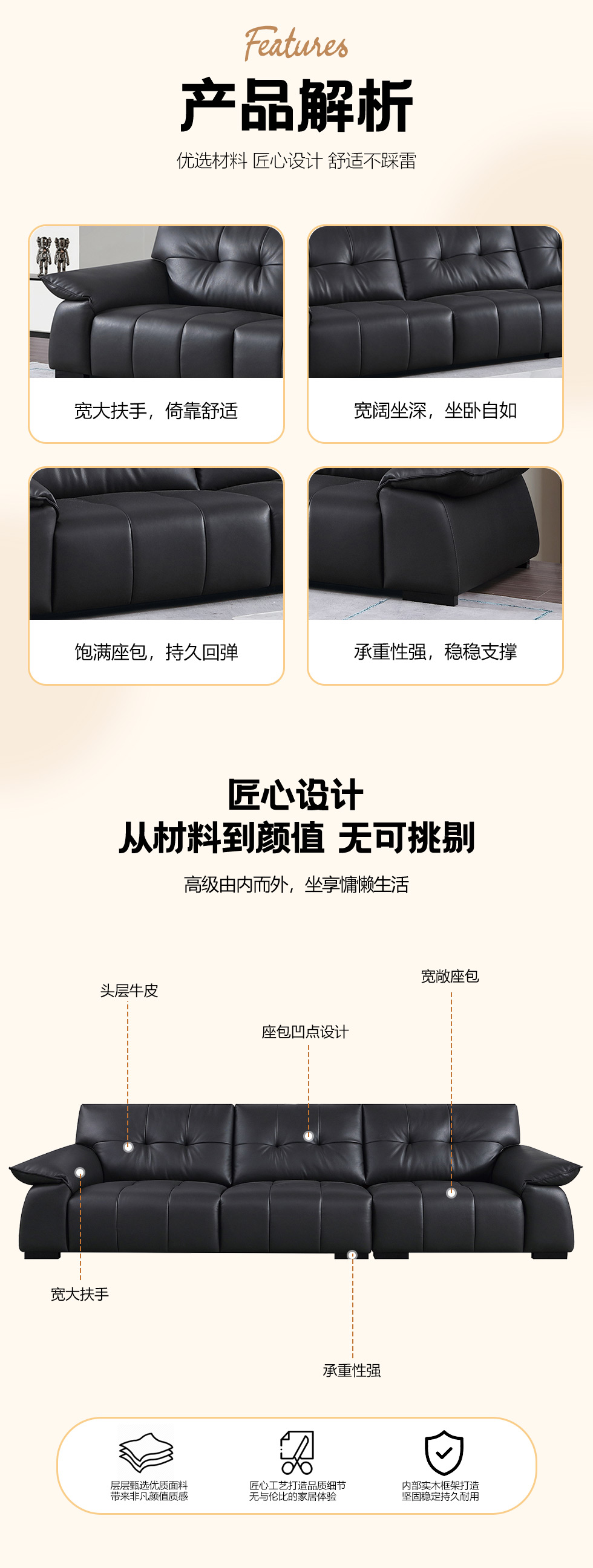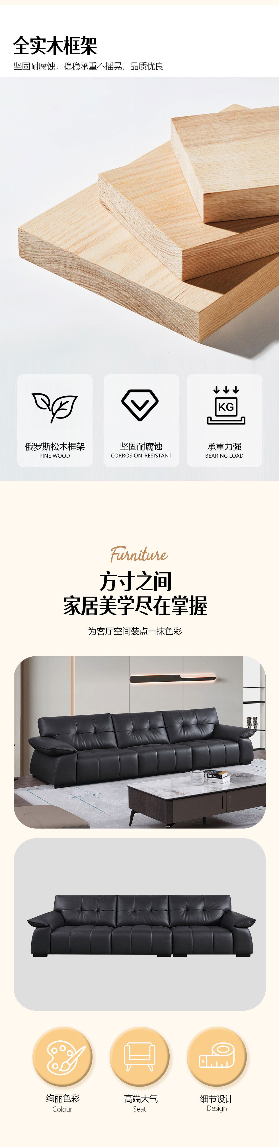 B系优选 现代简约 接触面中厚头层牛皮面料+进口俄罗斯松木框架+高回弹海绵+坐前真皮+仿真皮 四人位 3米沙发¥8155