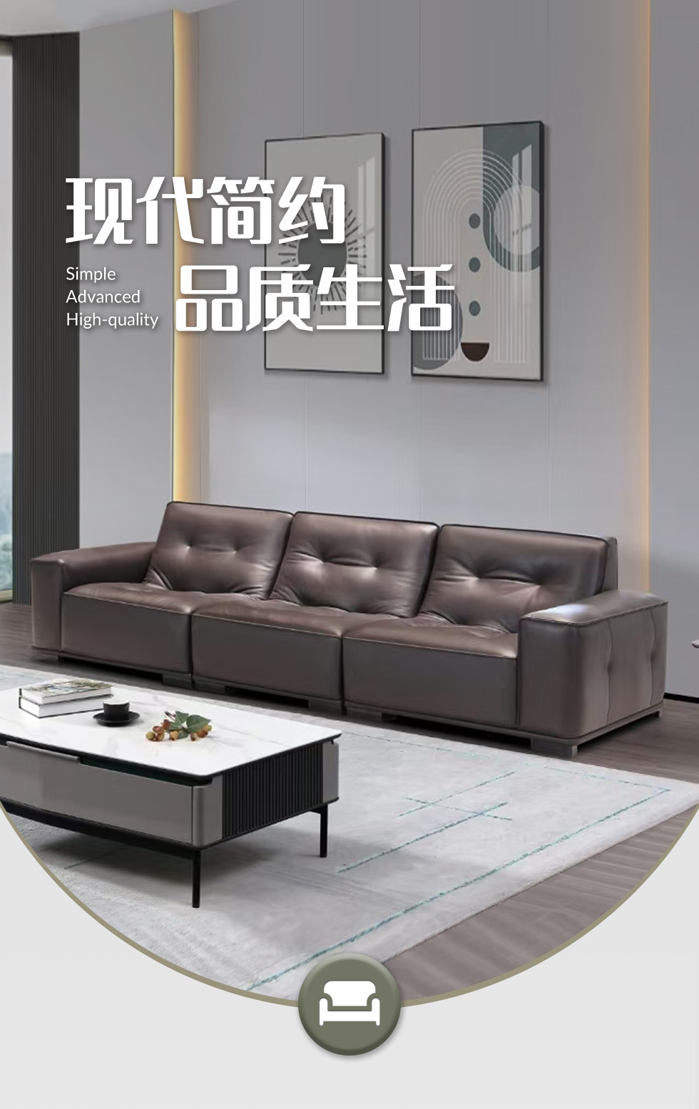 【套餐专享价】每屋优享系列 现代简约 接触面中厚头层牛皮面料+进口俄罗斯松木框架+高回弹海绵+坐前真皮+仿真皮 三人位 2.8米直排 沙发