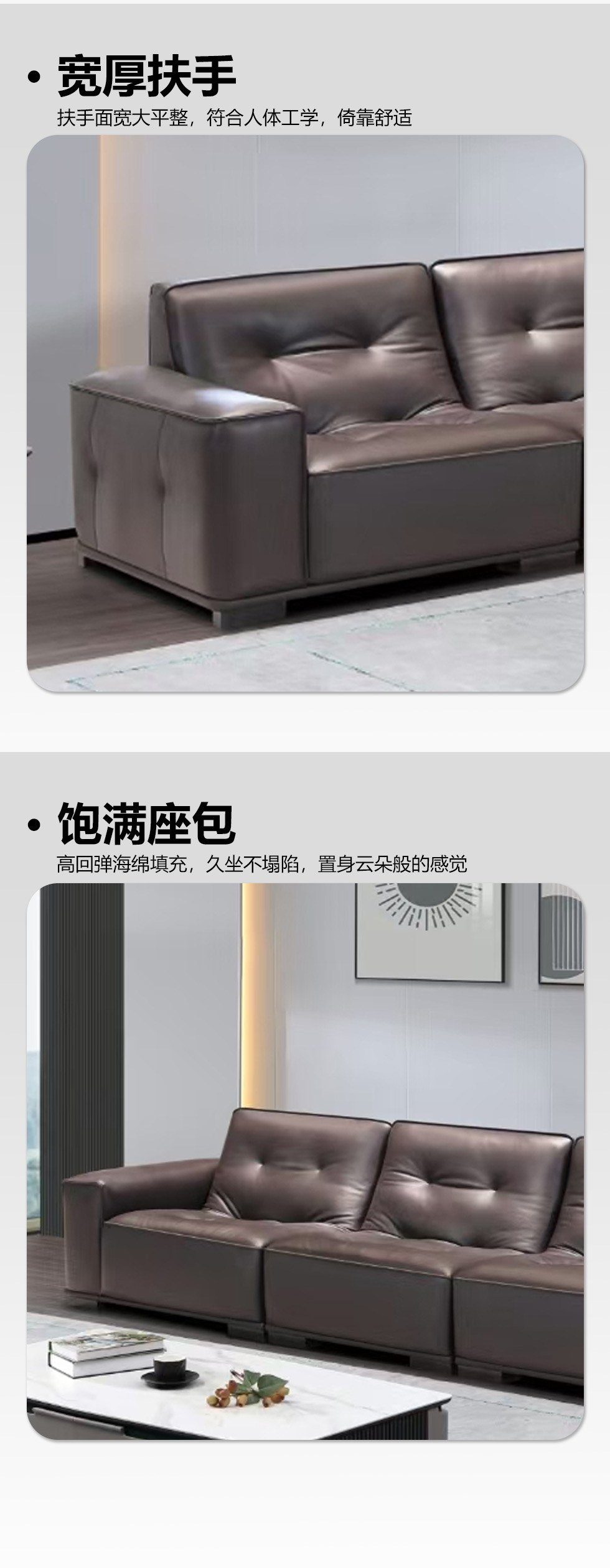 B系优选 现代简约 接触面头层黄牛皮+仿皮+E1级夹板+松木框架+无粉高密度海绵+靠包填充公仔棉 四人位 真皮2.8米沙发