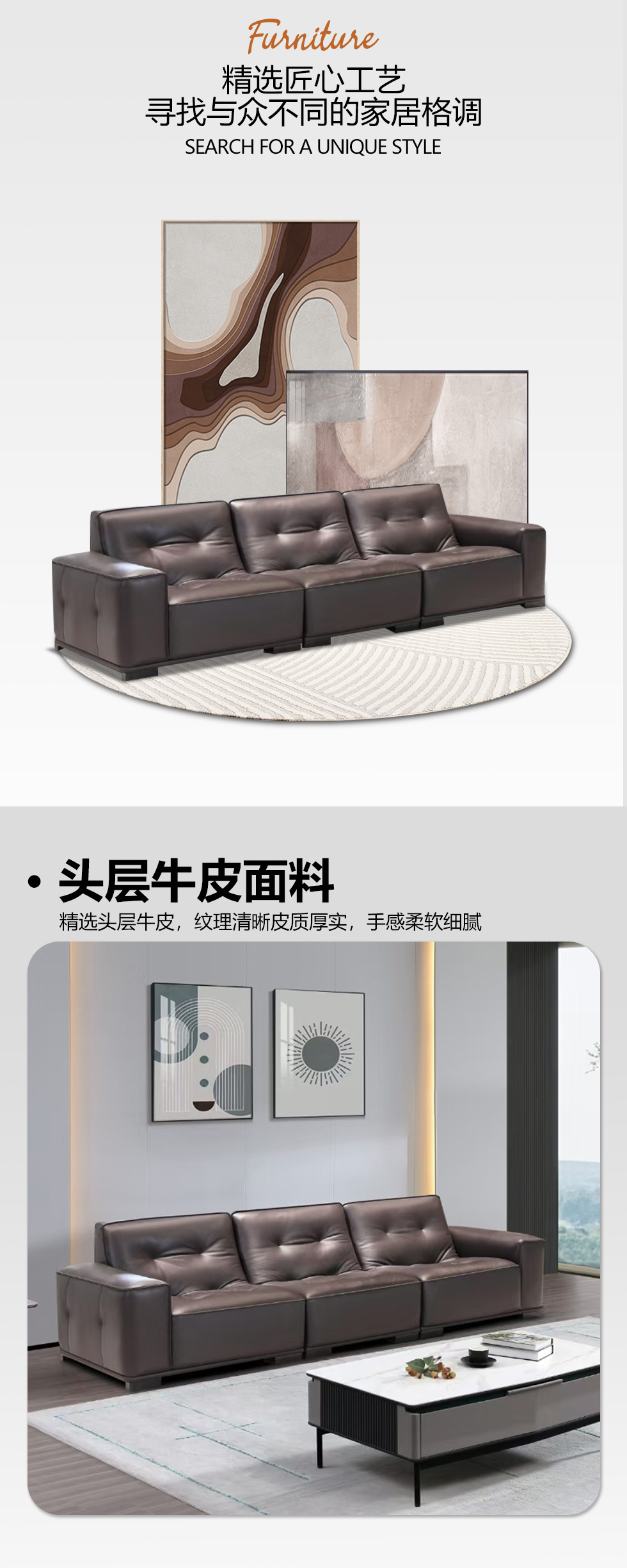 B系优选 现代简约 接触面中厚头层牛皮面料+进口俄罗斯松木框架+高回弹海绵+坐前真皮+仿真皮 四人位 3米沙发¥8155