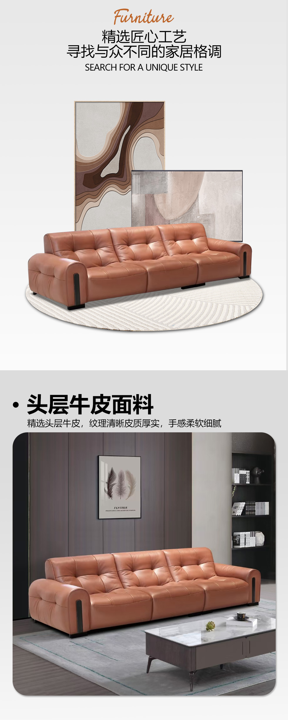 B系优选 现代简约 接触面中厚头层牛皮面料+进口俄罗斯松木框架+高回弹海绵+坐前真皮+仿真皮 四人位 3米沙发¥8155