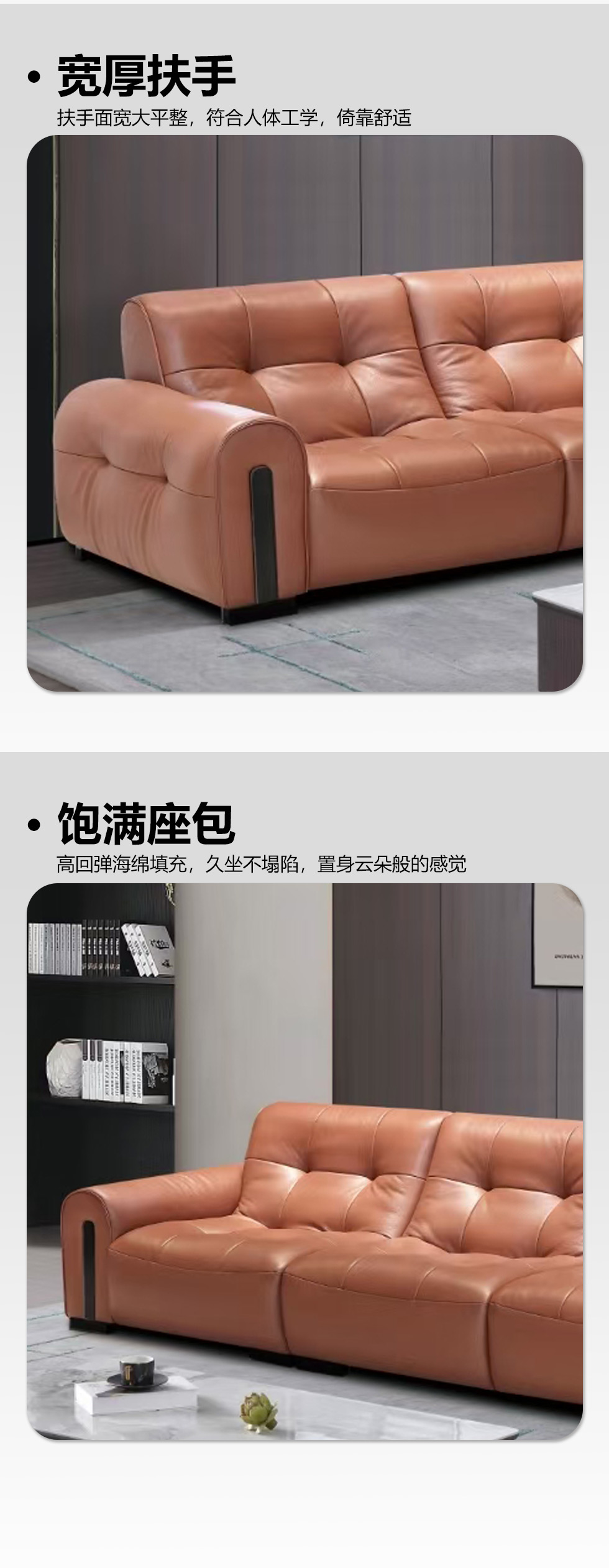 B系优选 现代简约 接触面中厚头层牛皮面料+进口俄罗斯松木框架+高回弹海绵+仿真皮 四人位 3.2米沙发