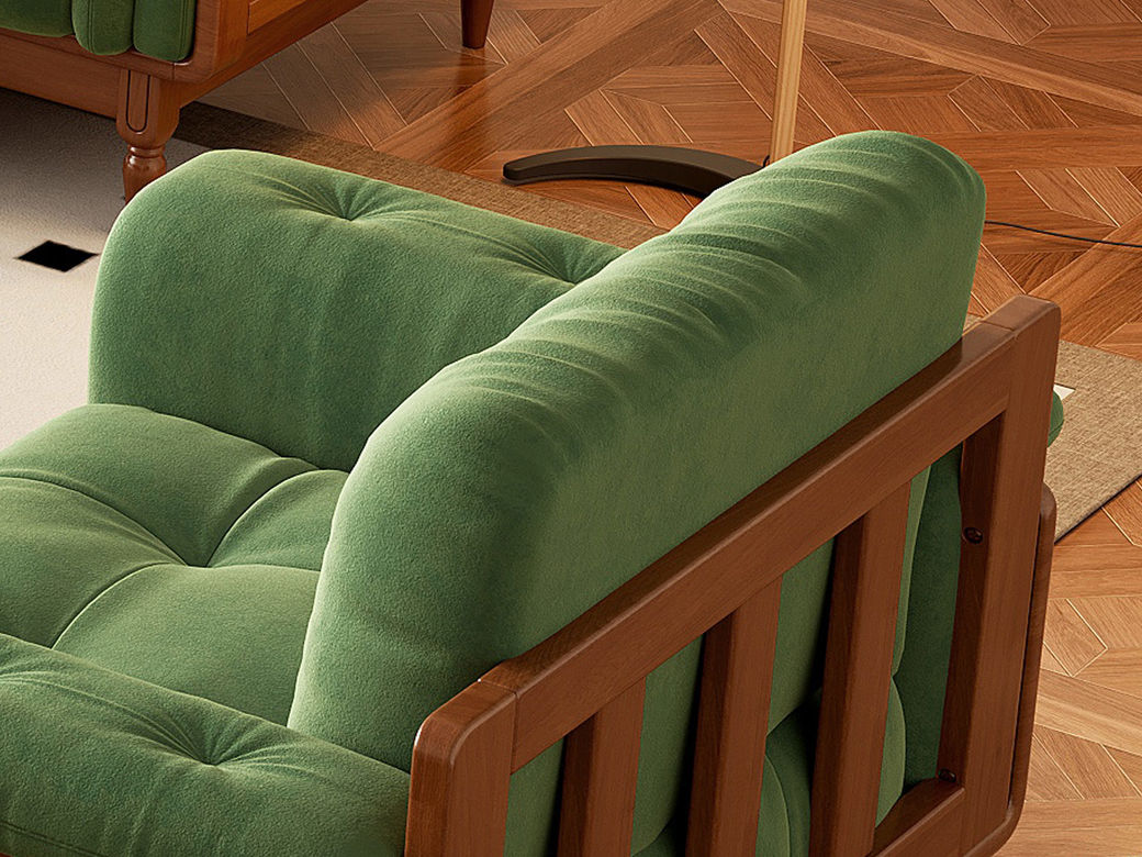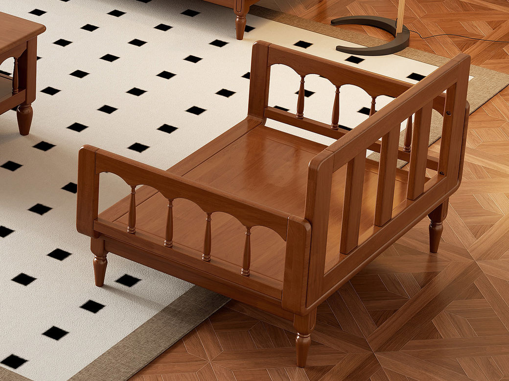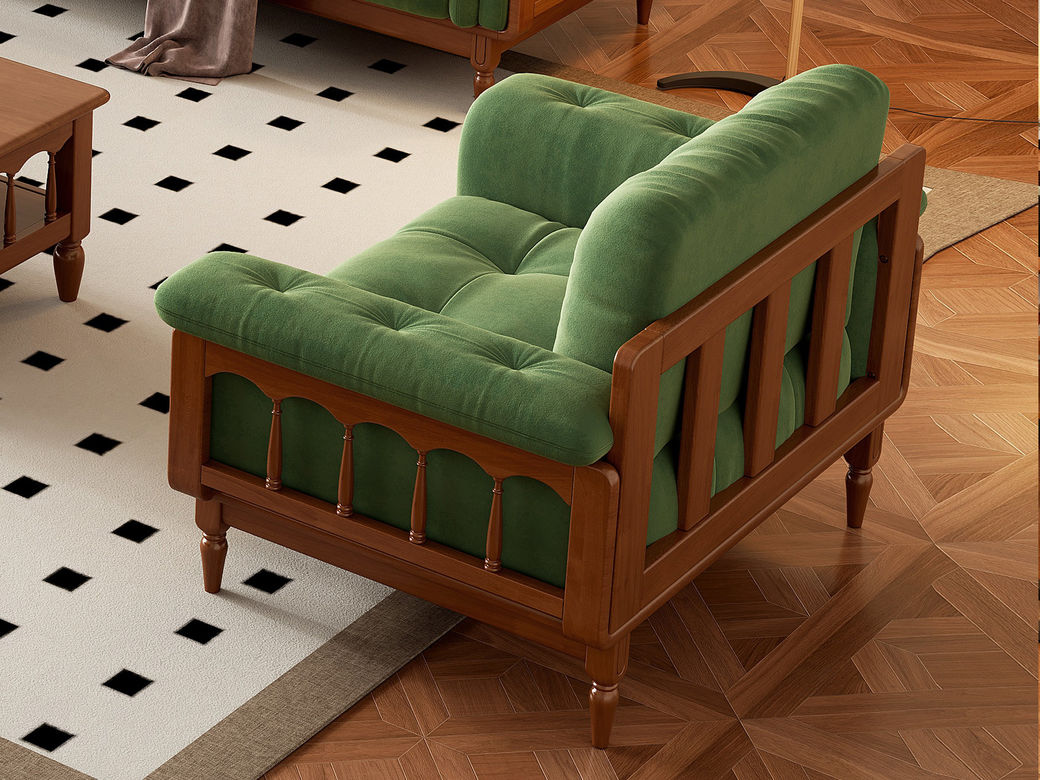 木作中古 中古风 橡胶木+科技布 单人位 0.98米沙发