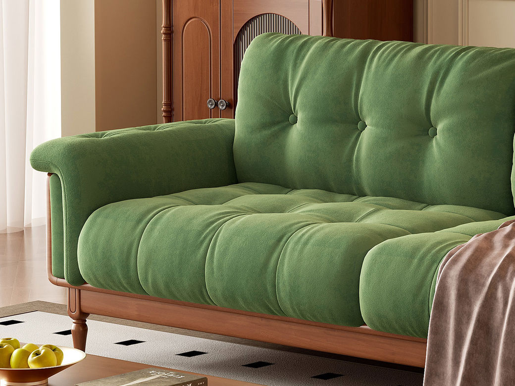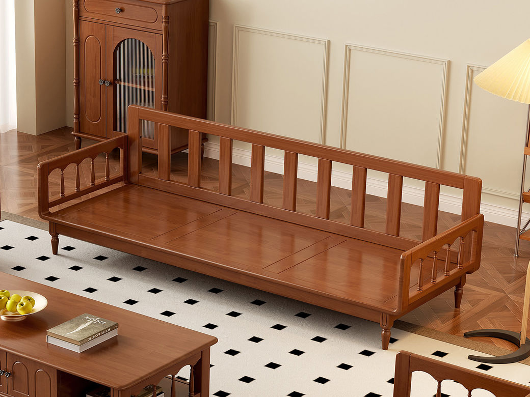 木作中古 中古风 橡胶木+科技布 三人位 2.34米沙发