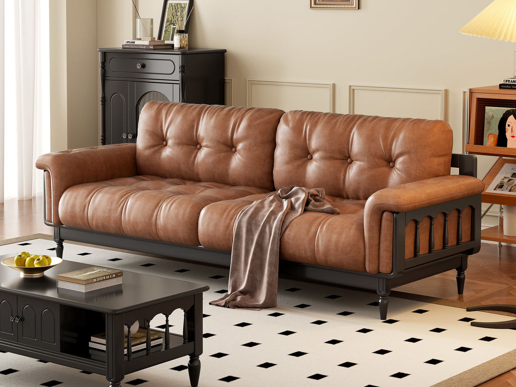 中古·森 网红 中古风 进口樱桃木+多层实木板+蛇形弹簧+全实木框架+仿真皮+高回弹海绵 直排2.6米沙发| 商品详情 | 规格参数 | 评价(0) | 购买咨询() | 产品实拍图 | 服务标准 |