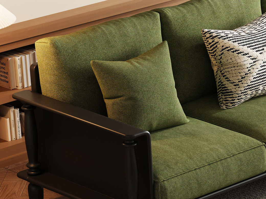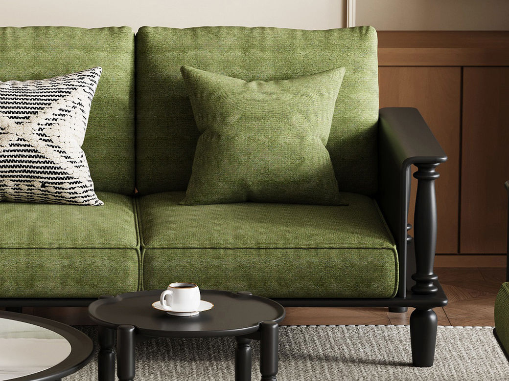 木作中古 中古风 橡胶木+科技布 三人位 2.34米沙发