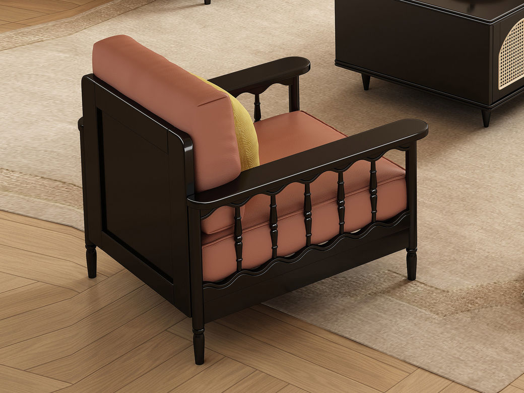 木作中古 中古风 橡胶木+科技布 单人位 0.86米沙发
