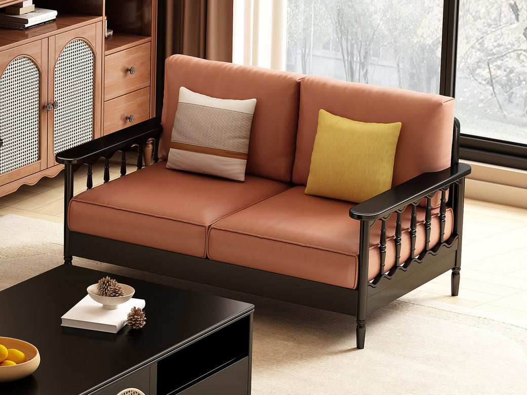 木作中古 中古风 橡胶木+科技布 双人位 1.56米沙发