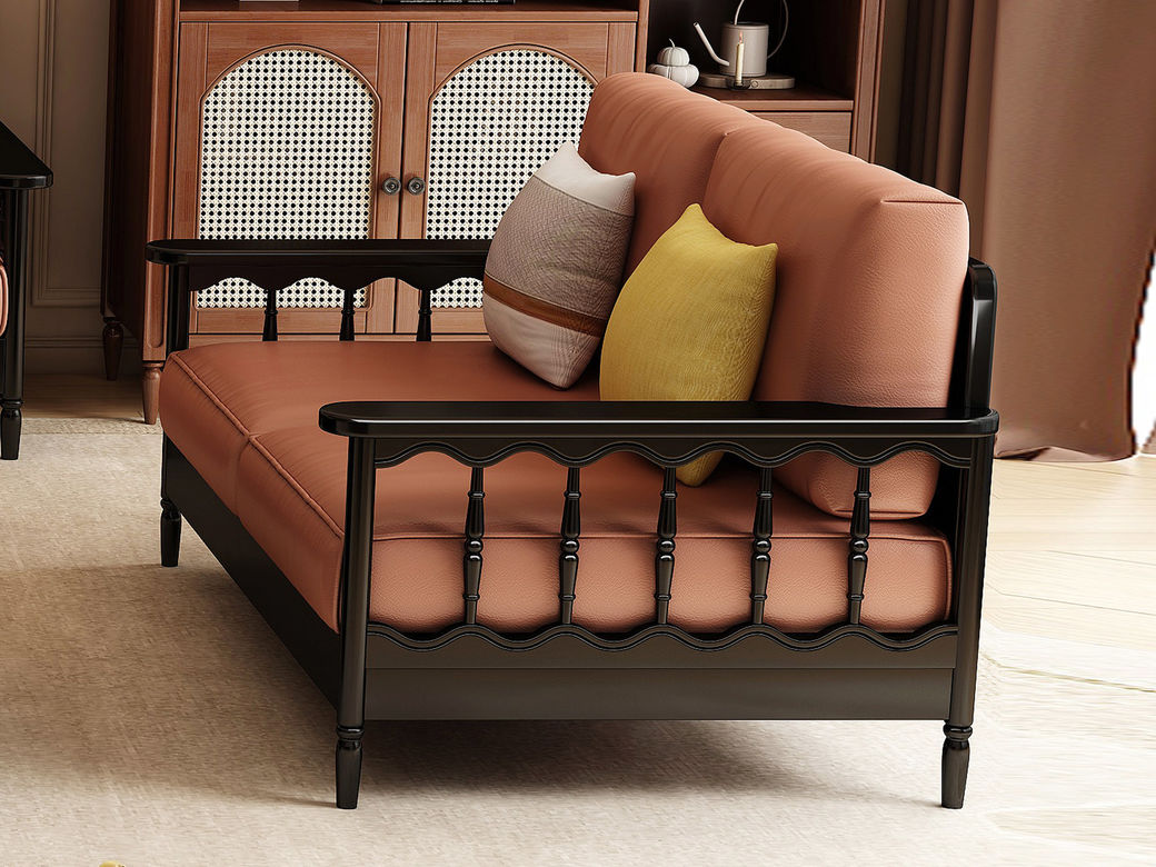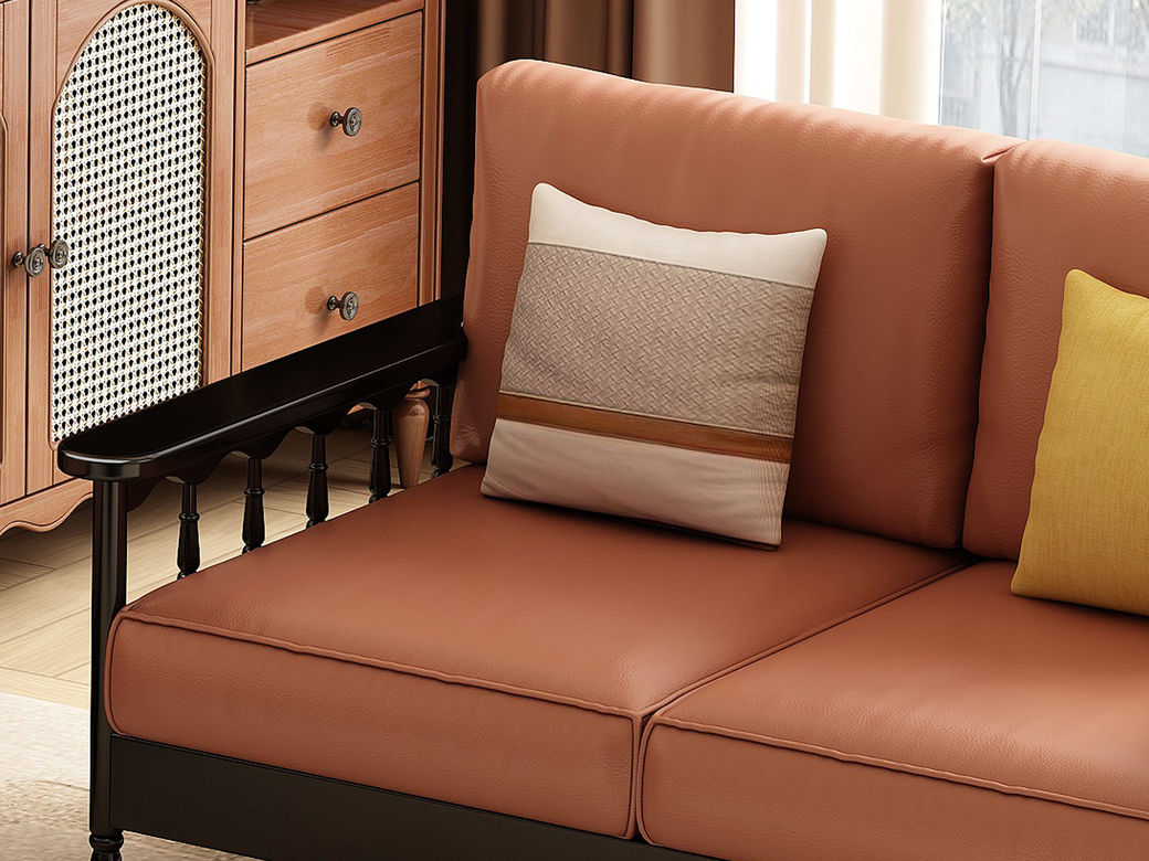 中古·森 网红 中古风 进口樱桃木+多层实木板+蛇形弹簧+全实木框架+仿真皮+高回弹海绵 直排2.6米沙发| 商品详情 | 规格参数 | 评价(0) | 购买咨询() | 产品实拍图 | 服务标准 |