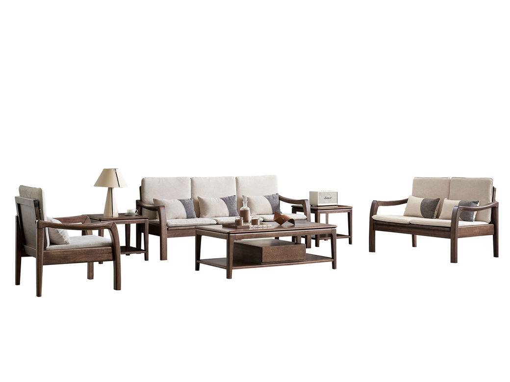 匠心 中式 榄仁木+实木多层板 单人+双人+三人 沙发