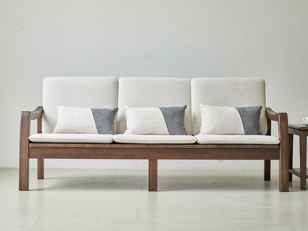 匠心 中式 榄仁木+实木多层板 三人位 2.16米沙发