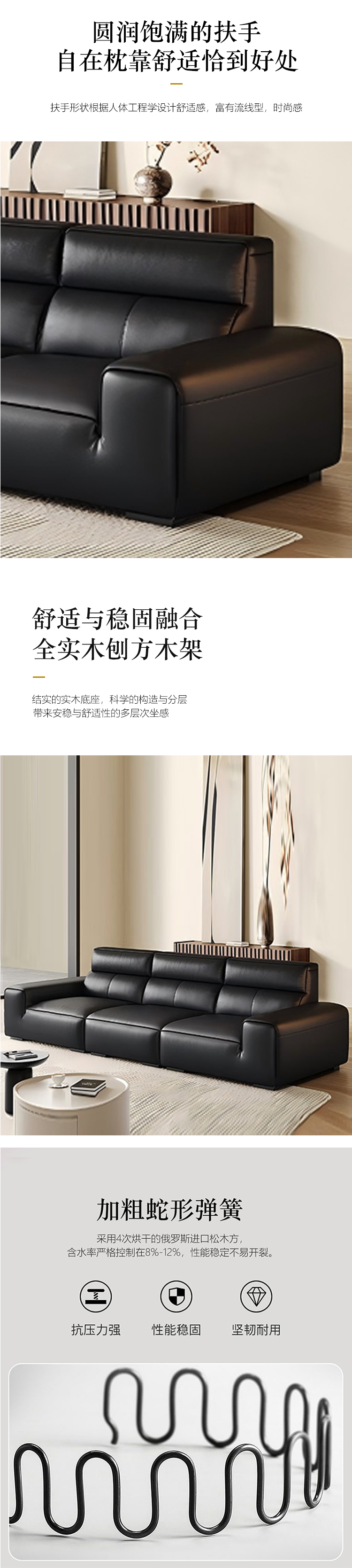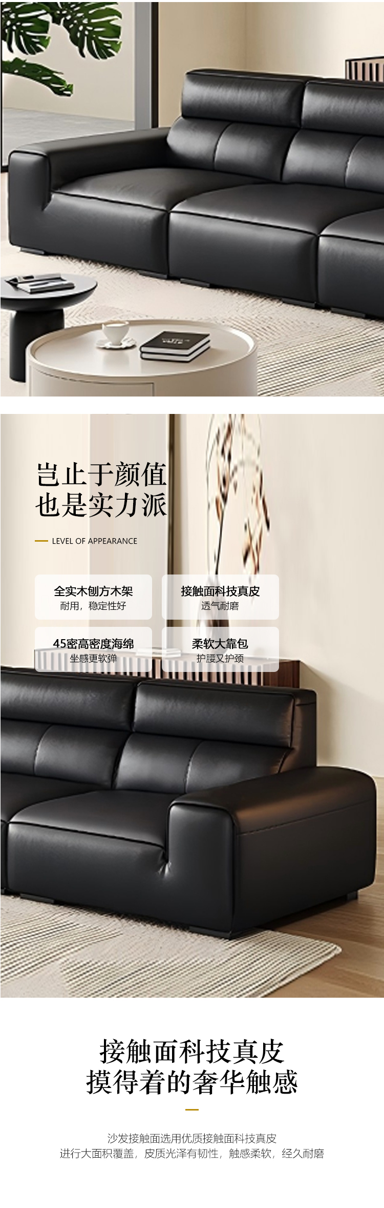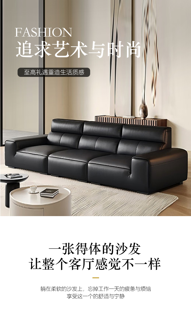 【套餐专享价】每屋优享系列 现代简约 接触面科技真皮 全实木刨方木架+蛇形弹簧 45密高密度海绵 碳素钢五金脚 3.0米直排 沙发