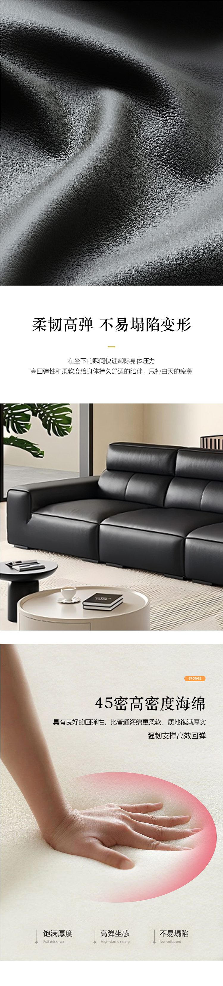 【套餐专享价】每屋优享系列 现代简约 进口全实木抛光落叶松+金刚弹簧网+接触面生态真皮+非接触面仿皮+45度高回弹海绵(靠包抱枕)公仔棉+超级加宽松紧带+木脚 3.2米 沙发| 商品详情 | 规格参数 | 评价(0) | 购买咨询() | 产品实拍图 | 服务标准 |