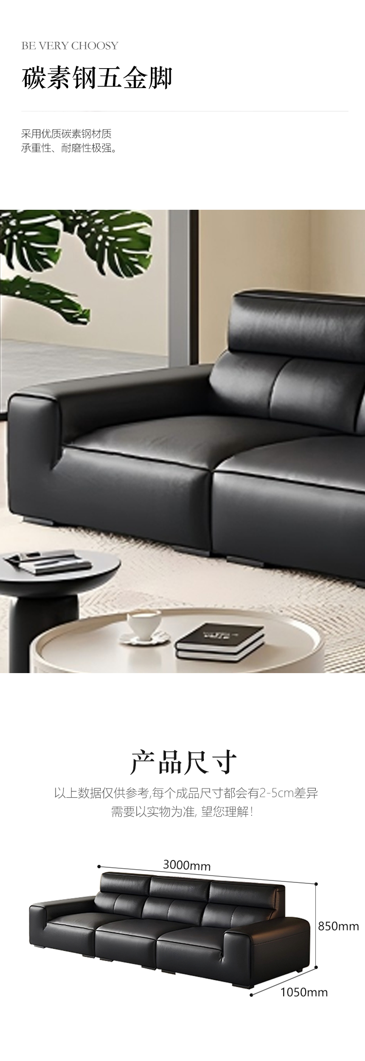 【套餐专享价】每屋优享系列 现代简约 接触面生态真皮+45度高回弹海绵+靠包+抱枕公仔棉填充+进口全实木抛光落叶松+金刚弹簧网+超级加宽松 紧带+13cm黑色铁脚 2.8米 沙发¥4660
