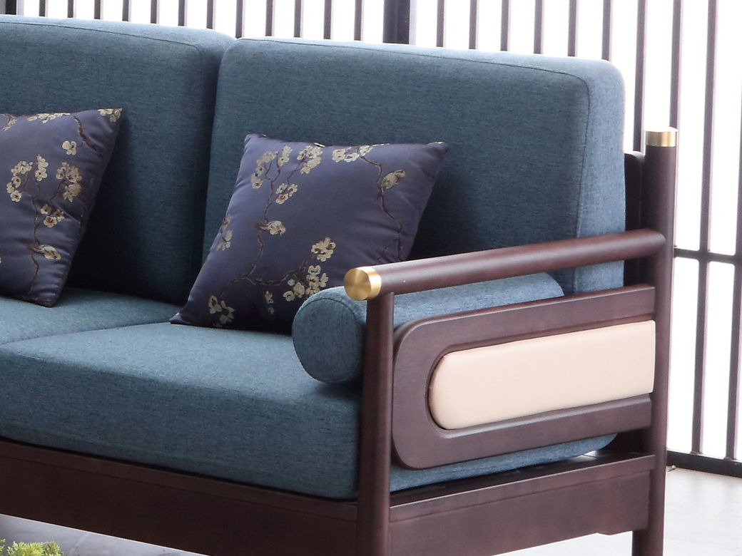 山止 新中式 橡胶木框架+实木多层板座板+科技布坐垫+高密度海绵 三人位 2.05米沙发¥6258