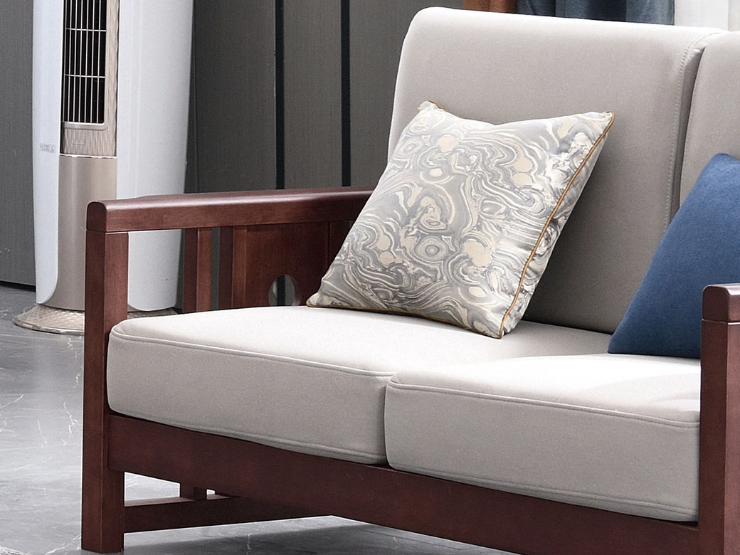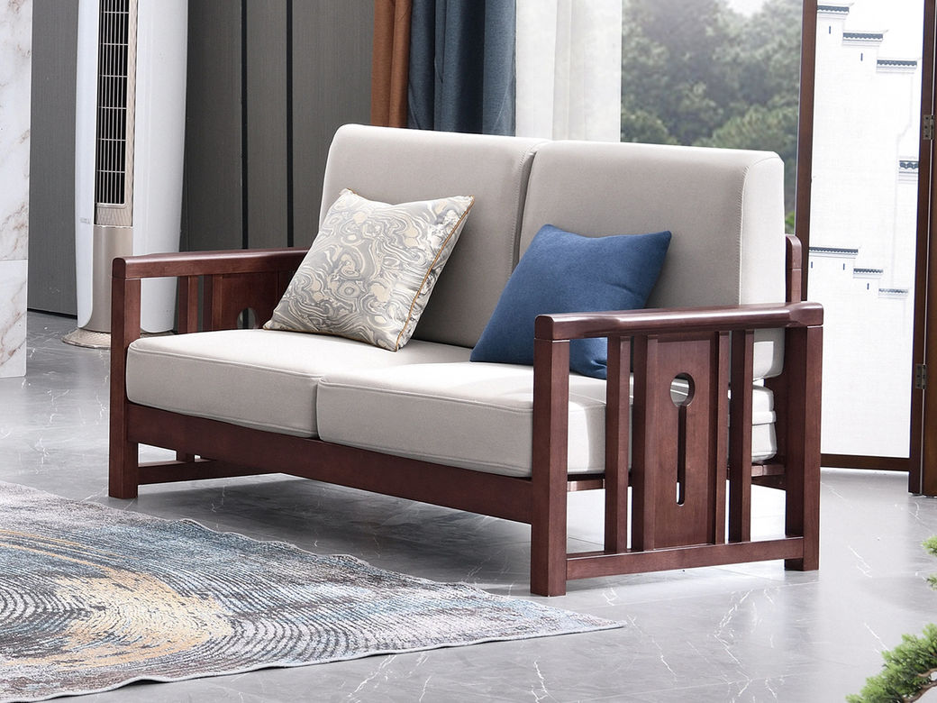 山止 新中式 橡胶木框架+实木多层板座板+科技布坐垫+高密度海绵 双人位 1.48米沙发