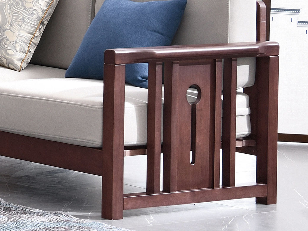 山止 新中式 橡胶木框架+实木多层板座板+科技布坐垫+高密度海绵 三人位 2.6米沙发¥5270