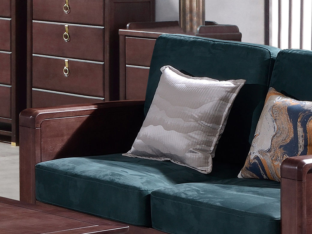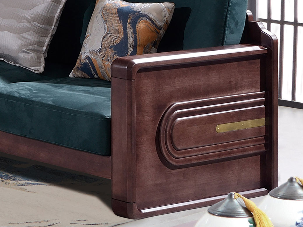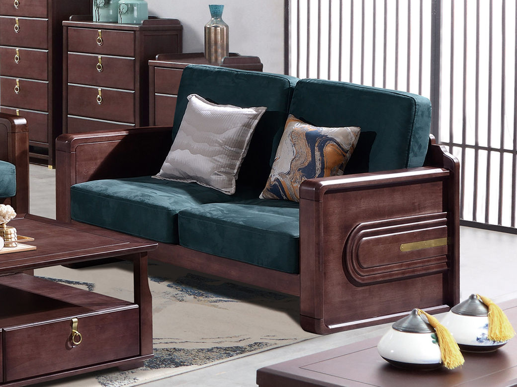 山止 新中式 橡胶木框架+实木多层板座板+绒布坐垫+高密度海绵 双人位 1.52米沙发