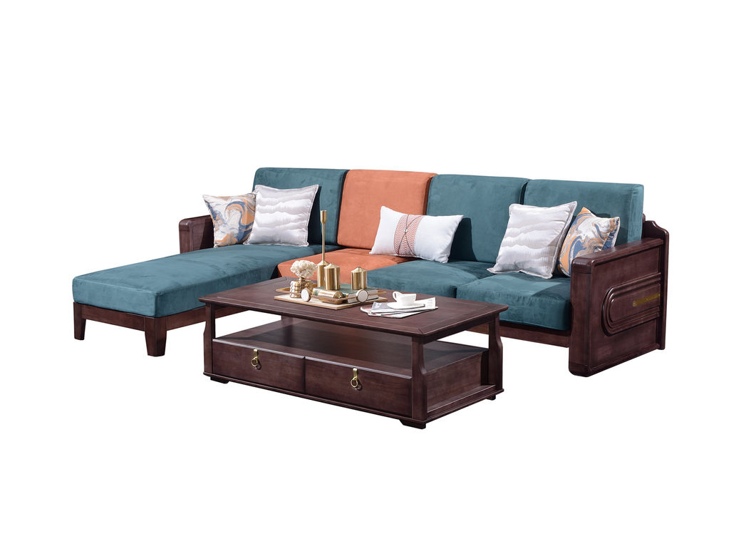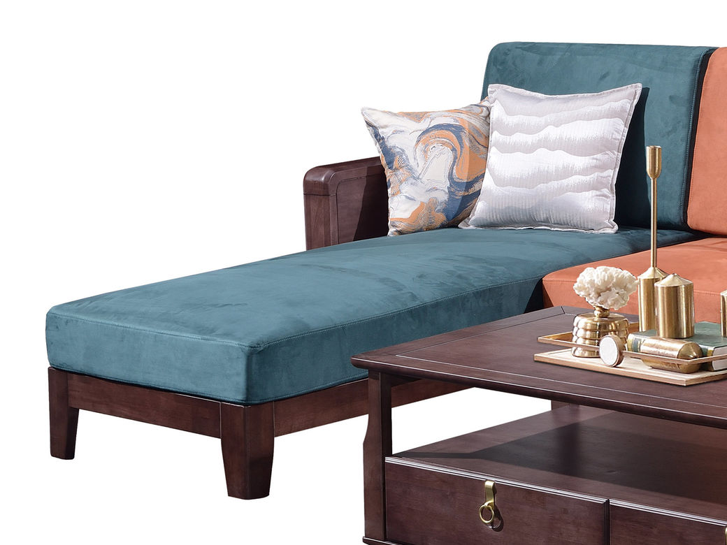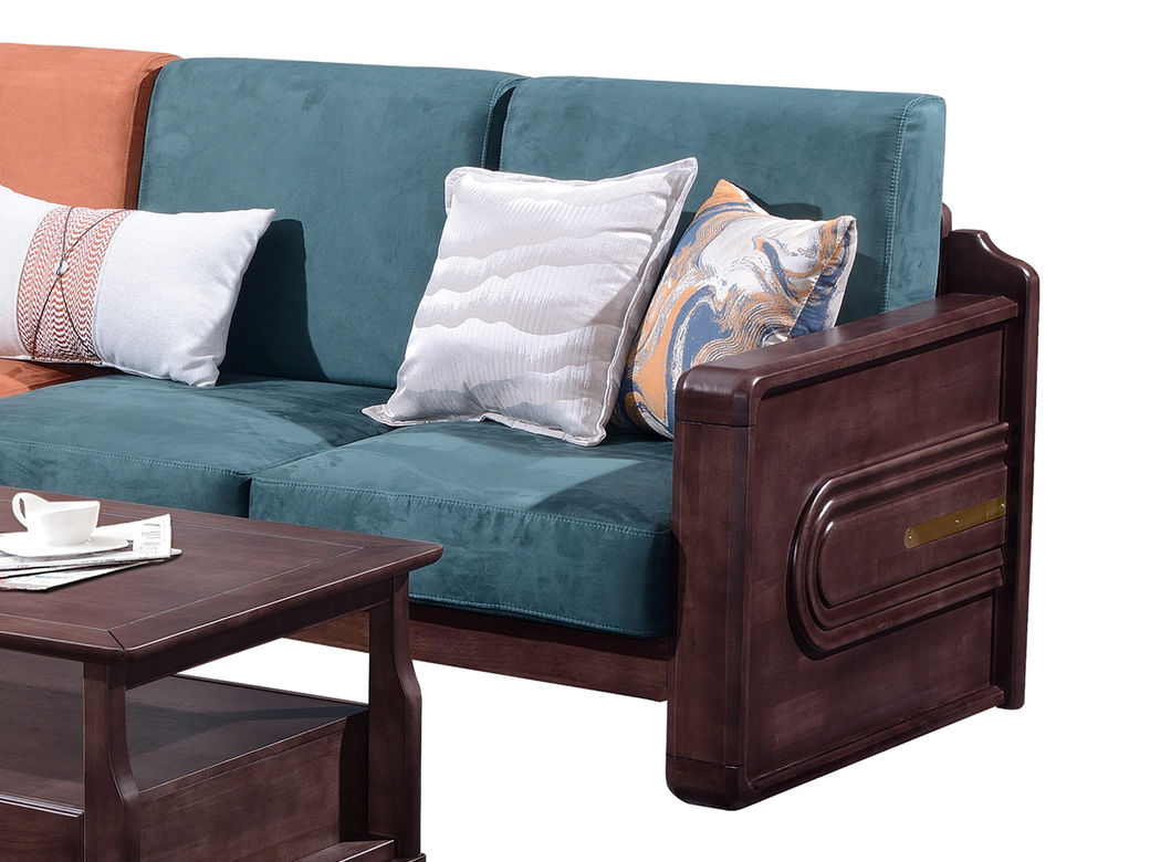 山止 新中式 橡胶木框架+实木多层板座板+绒布坐垫+高密度海绵 转角沙发 2.82米沙发