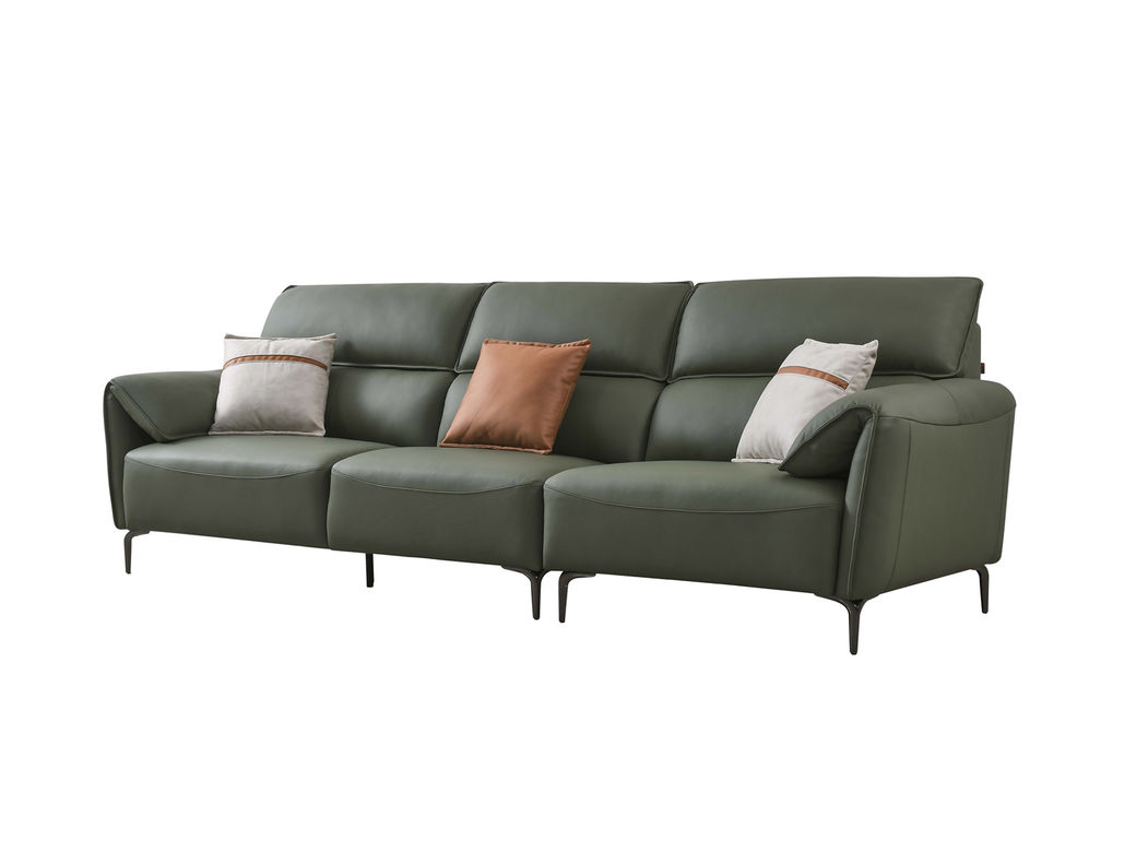 皇朝家居 现代极简 接触面轻压摔头层黄牛皮 +桉木足方+E1双面杨木夹板 Φ4.0拱簧+高回弹海绵+白鹅绒+公仔棉+五金脚 三人位 3.065米沙发
