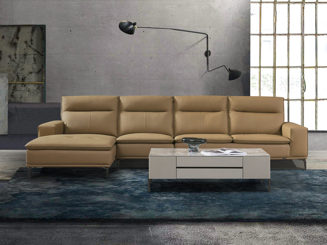 皇朝家居 现代极简 接触面轻压摔头层黄牛皮+桉木足方+E1双面杨木夹板+高回弹海绵+4.0 蛇形拱簧+白鹅绒+公仔棉+五金脚 1+3+左贵妃 3.83米沙发