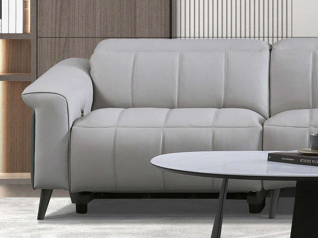 皇朝家居 现代极简 接触面YK015真皮+YK015(皮等级P2)西皮+高回弹海绵+五金脚(烟灰拉丝) 三人位 3.06米沙发