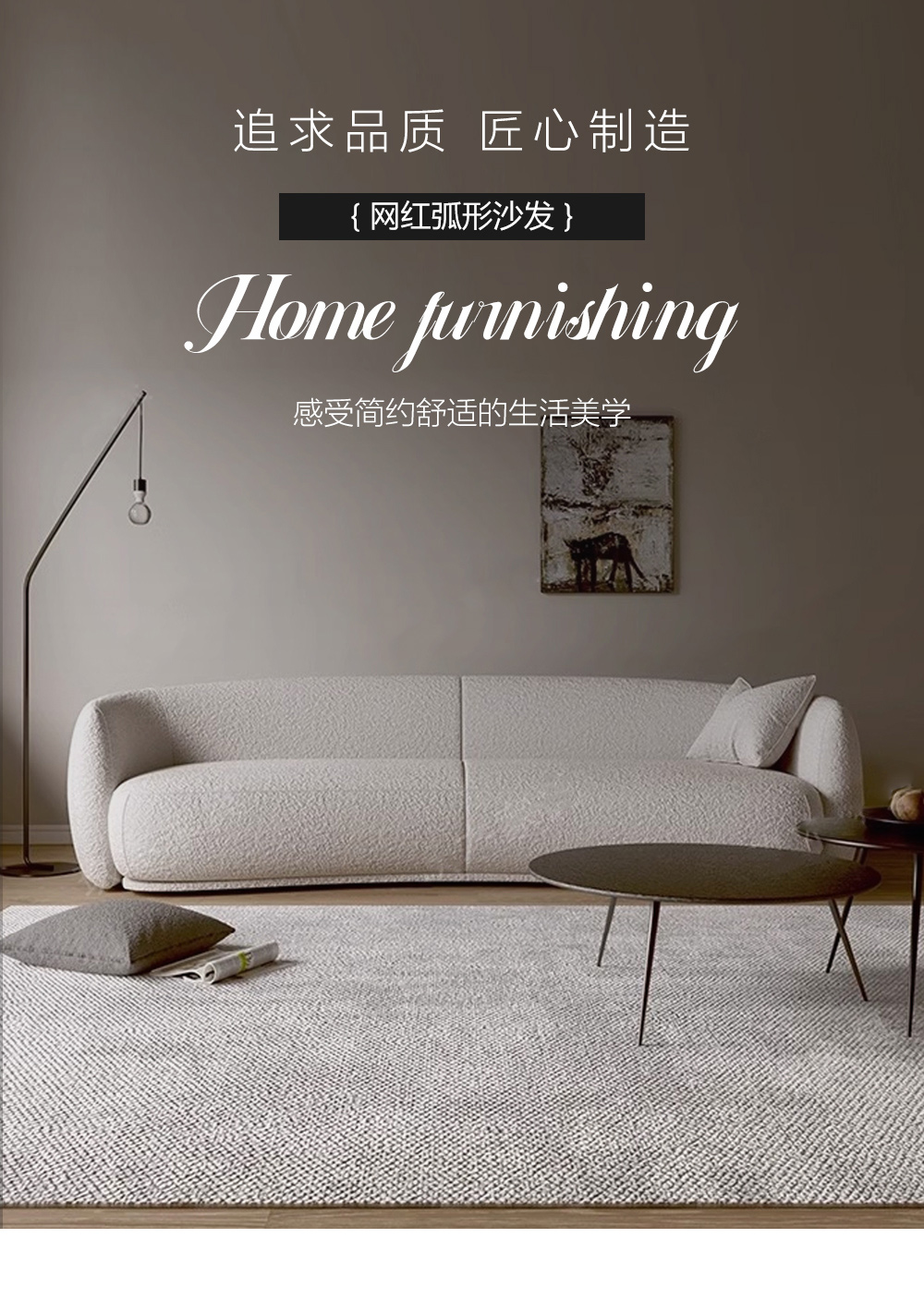 小红书系列 极简 羊羔绒+进口俄罗斯落叶松框架,高回弹高密度海绵 3米沙发