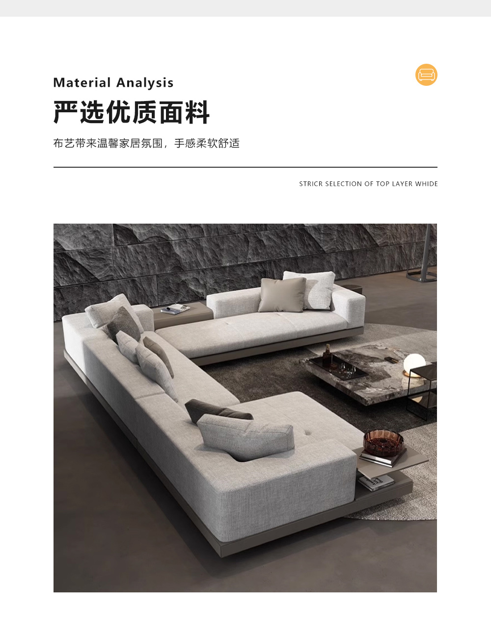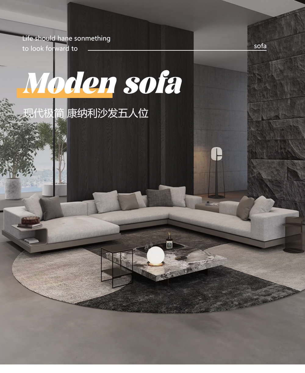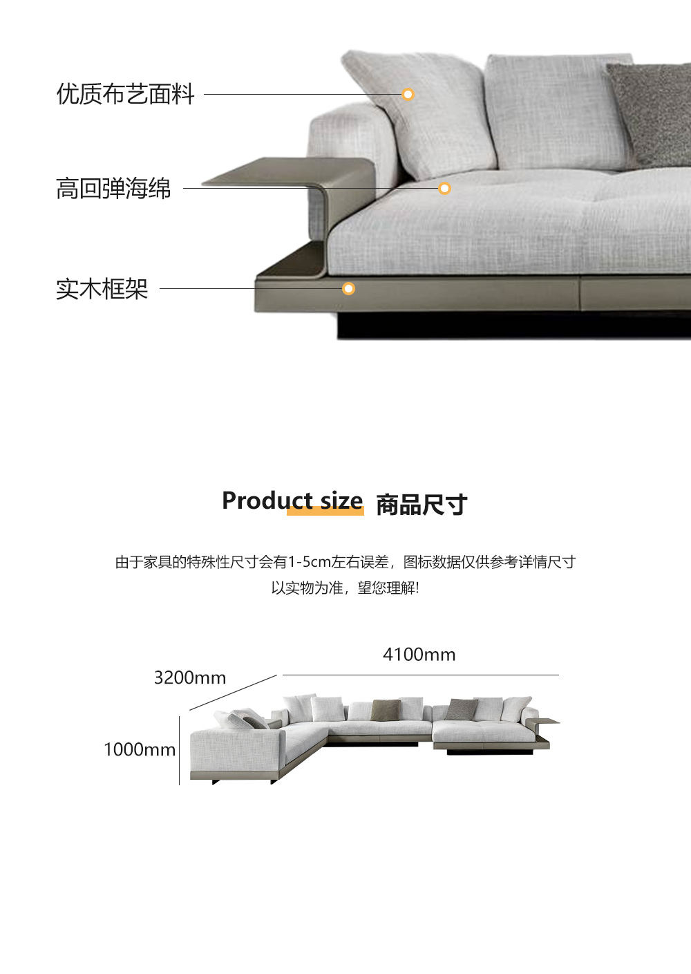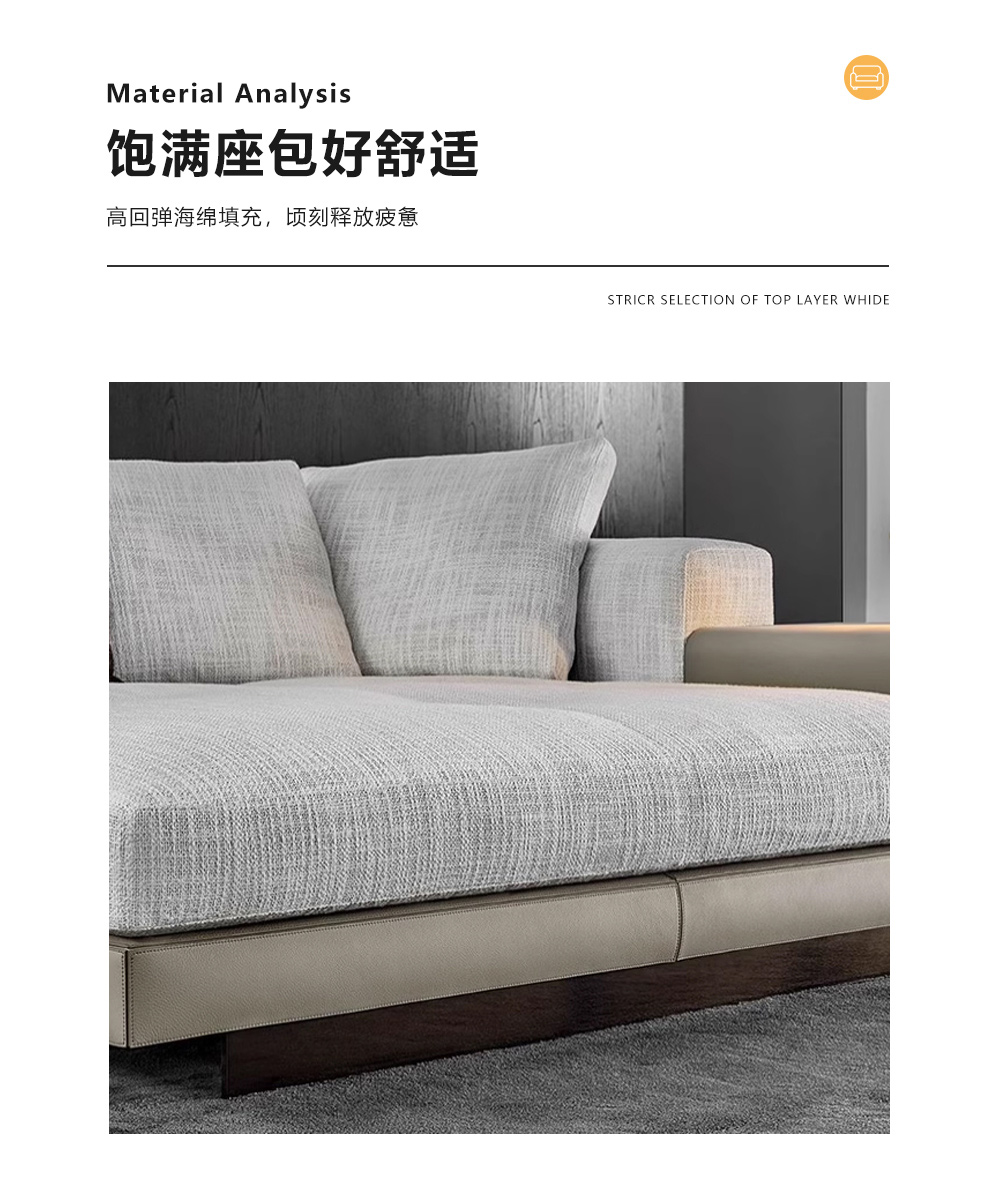 小红书系列 极简 马鞍革+麻布+实木多层板+进口俄罗斯落叶松框架,+高回弹高密度海绵+靠包羽绒+羽丝绒结合 4.1米康纳利沙发