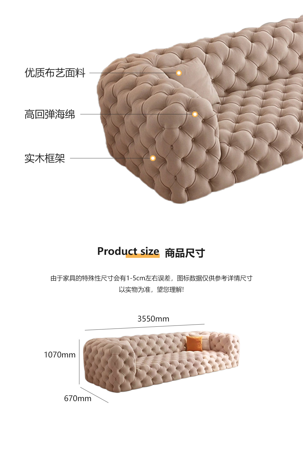 小红书系列 极简 磨砂绒+实木多层板+进口俄罗斯落叶松框架,+高回弹高密度海绵 3.55米月球表面沙发