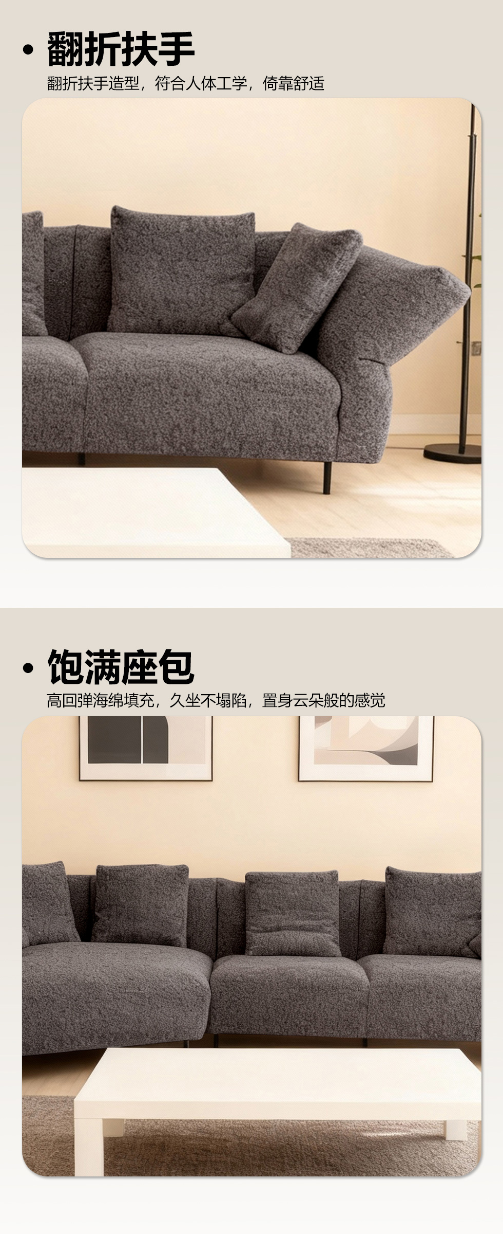小红书系列 极简 布料+进口俄罗斯落叶松 框架,高回弹高密度海绵 3.6米罗伯特沙发¥10783