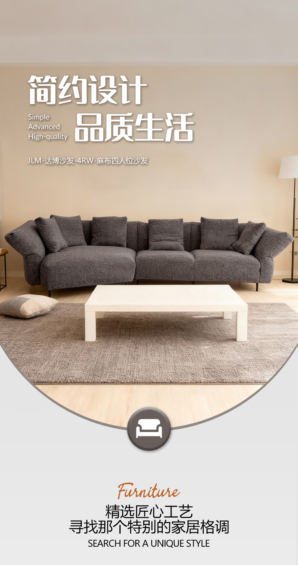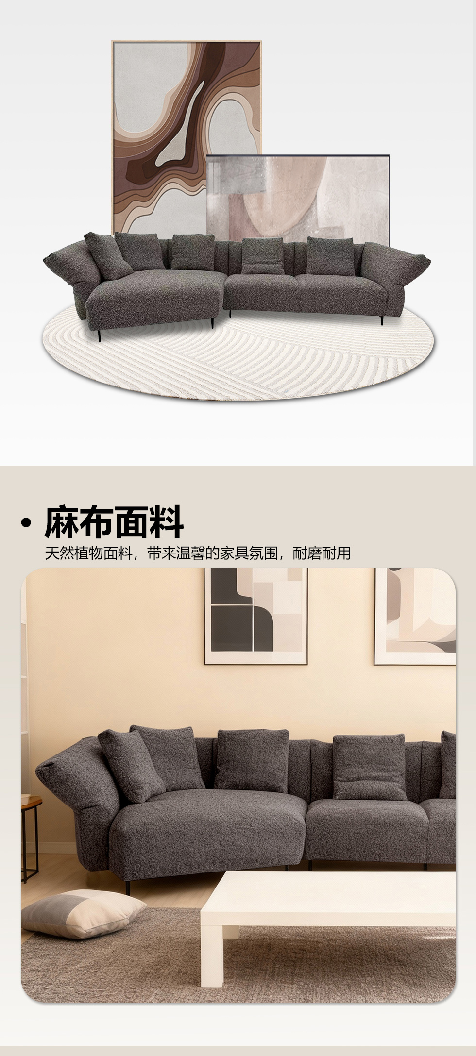 小红书系列 极简 麻布+进口俄罗斯落叶松框架:高回弹高密度海绵 4.05米沙发