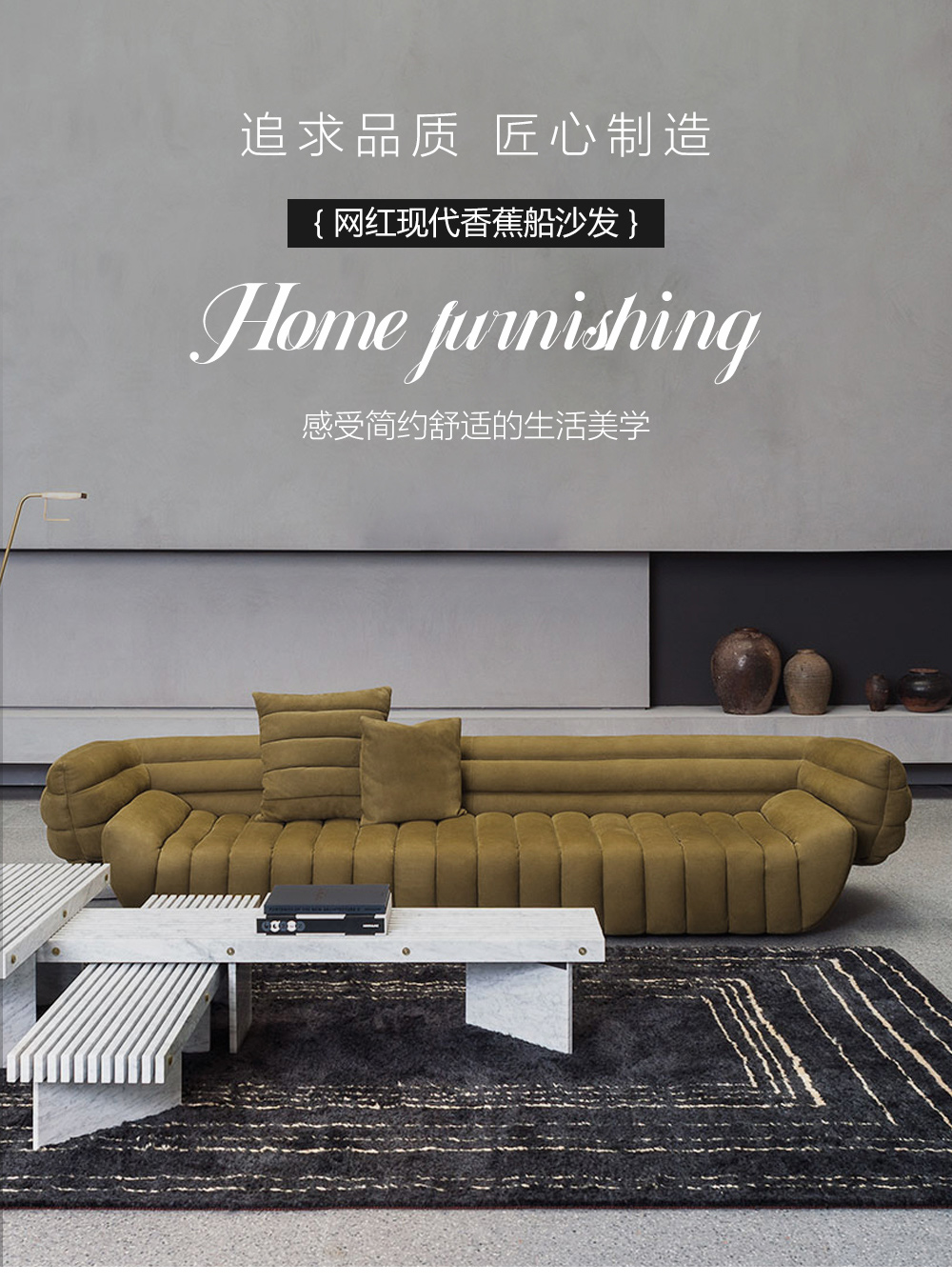 小红书系列 极简 磨砂绒+实木多层板+进口俄罗斯落叶松框架,+高回弹高密度海绵 3.2米香蕉船沙发
