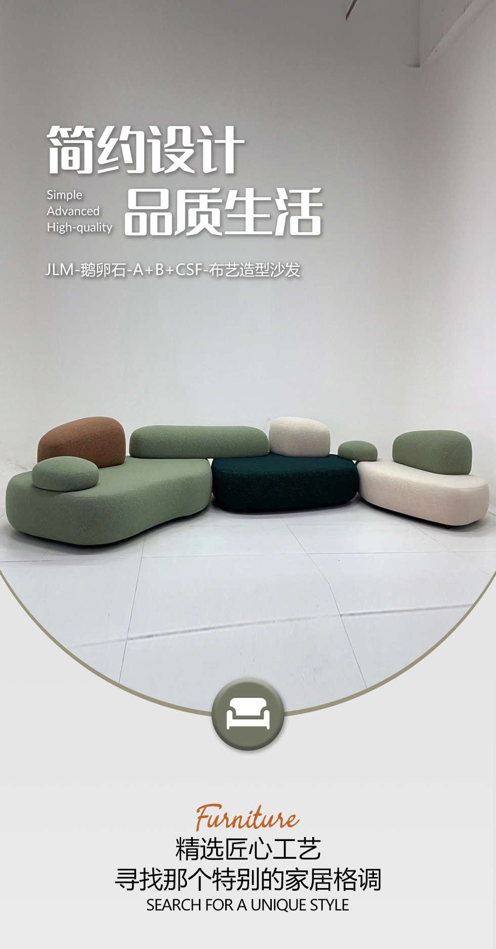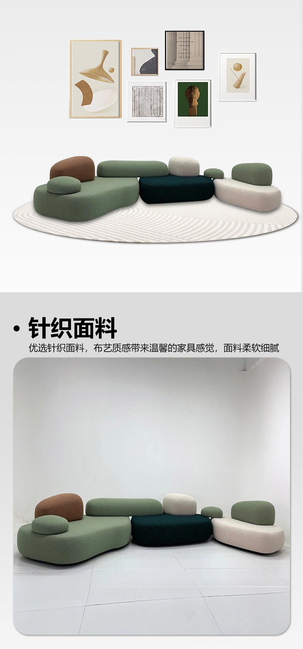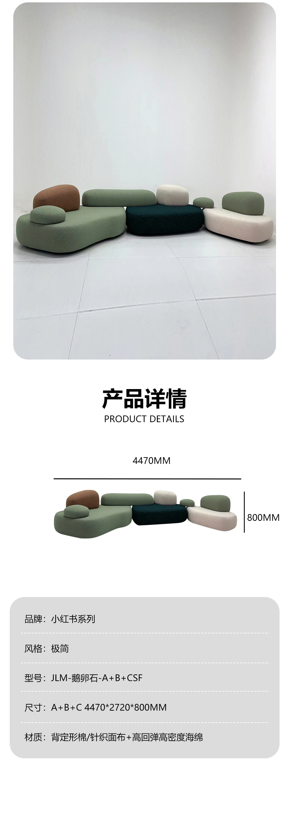小红书系列 极简 背定形棉/针织面布+进口俄罗斯落叶松框架,高回弹高密度海绵 组合鹅卵石沙发