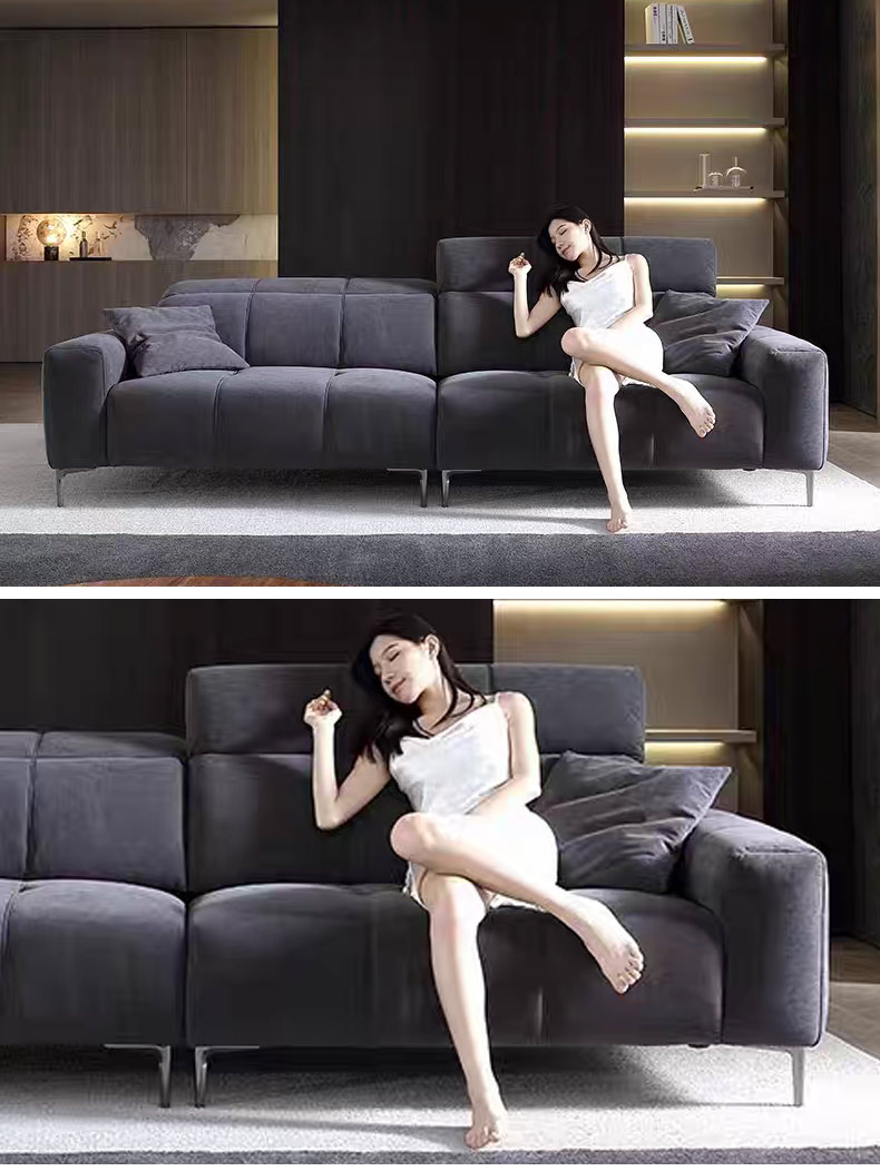 【套餐专享价】每屋优享系列 极简 高密度海绵全实木框架靠背羽绒填充猫抓皮五高脚 四人位 2.6米沙发